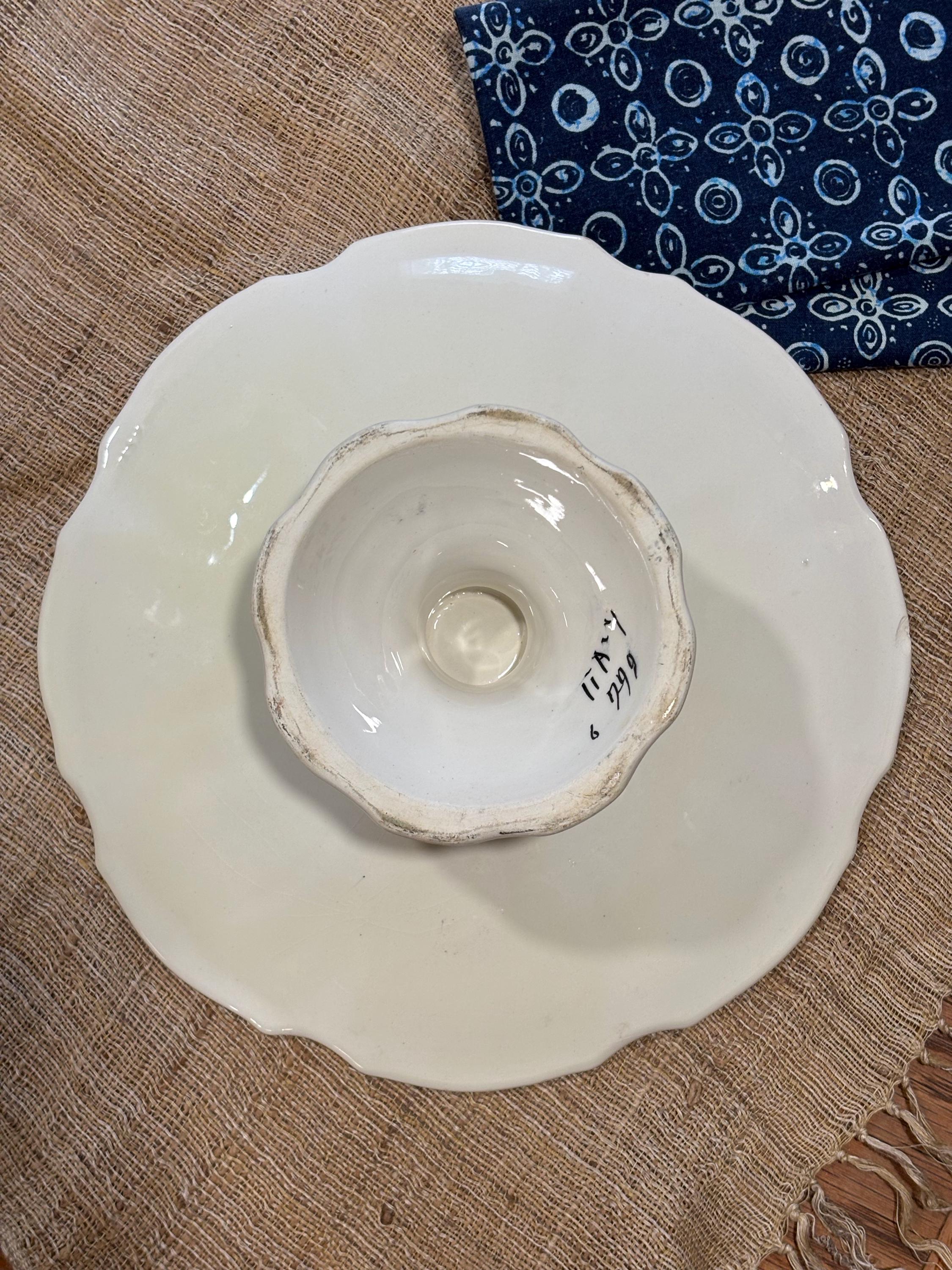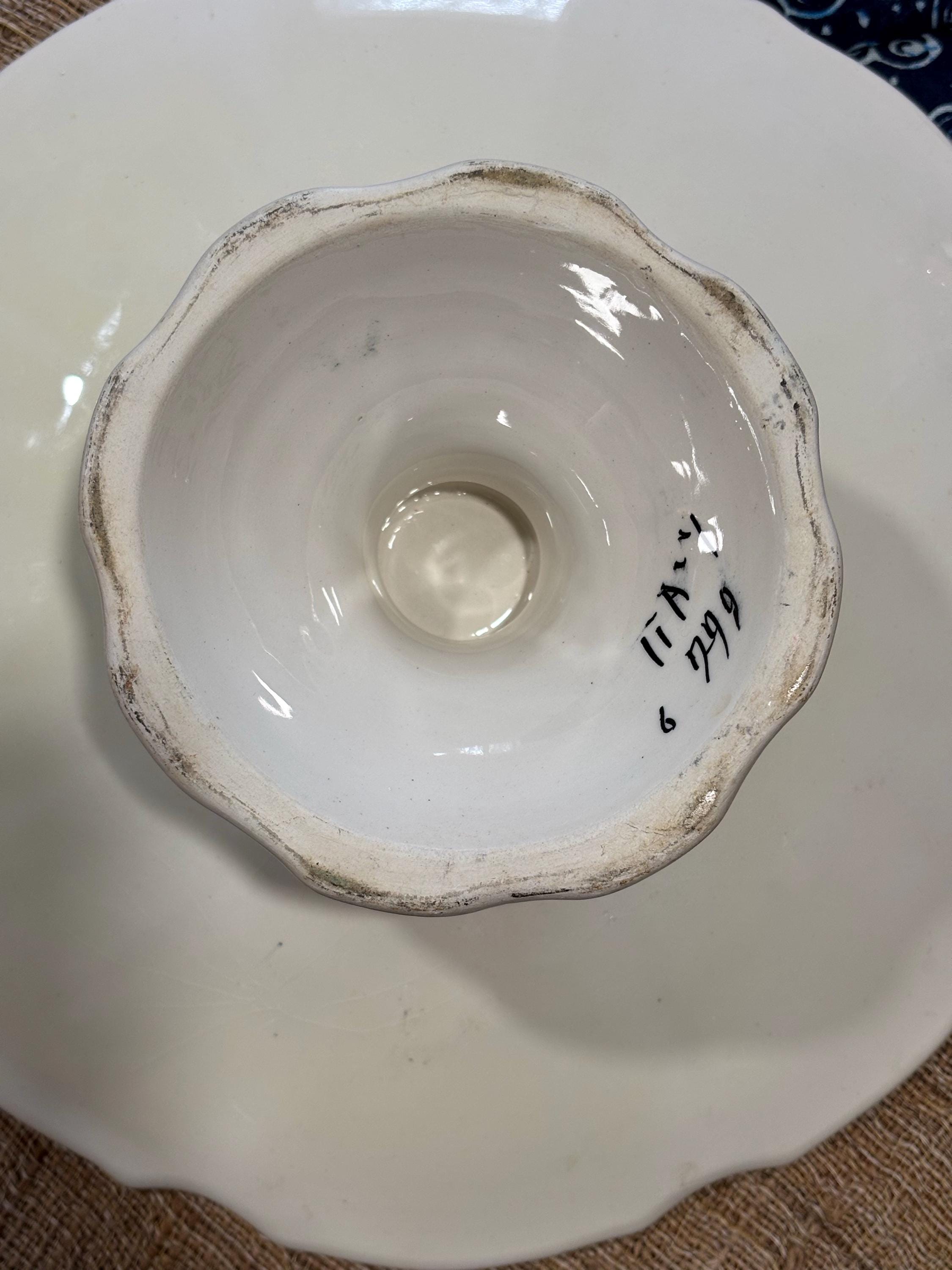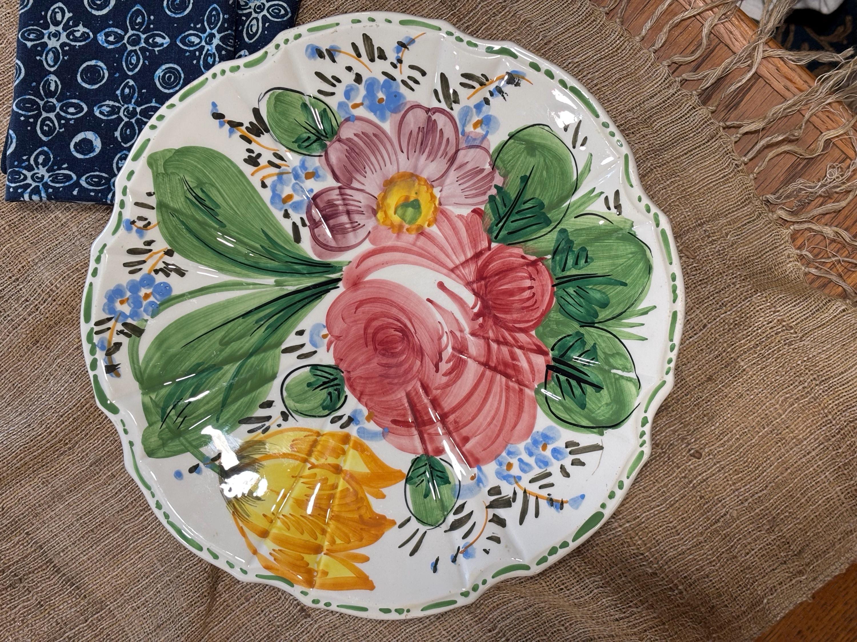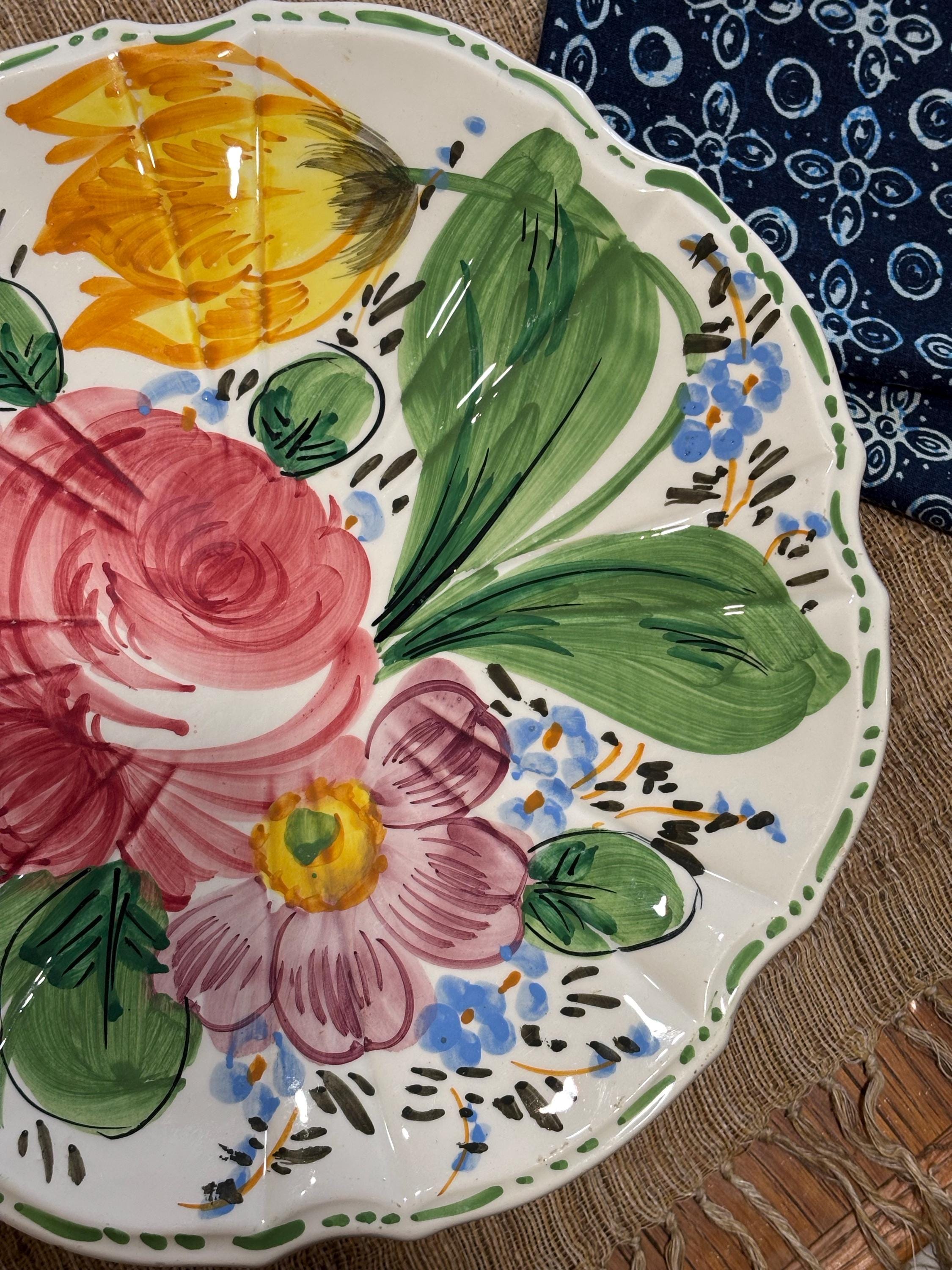 Vintage Italian Folk Art/Majolica Ceramic Floral Cake Stand.