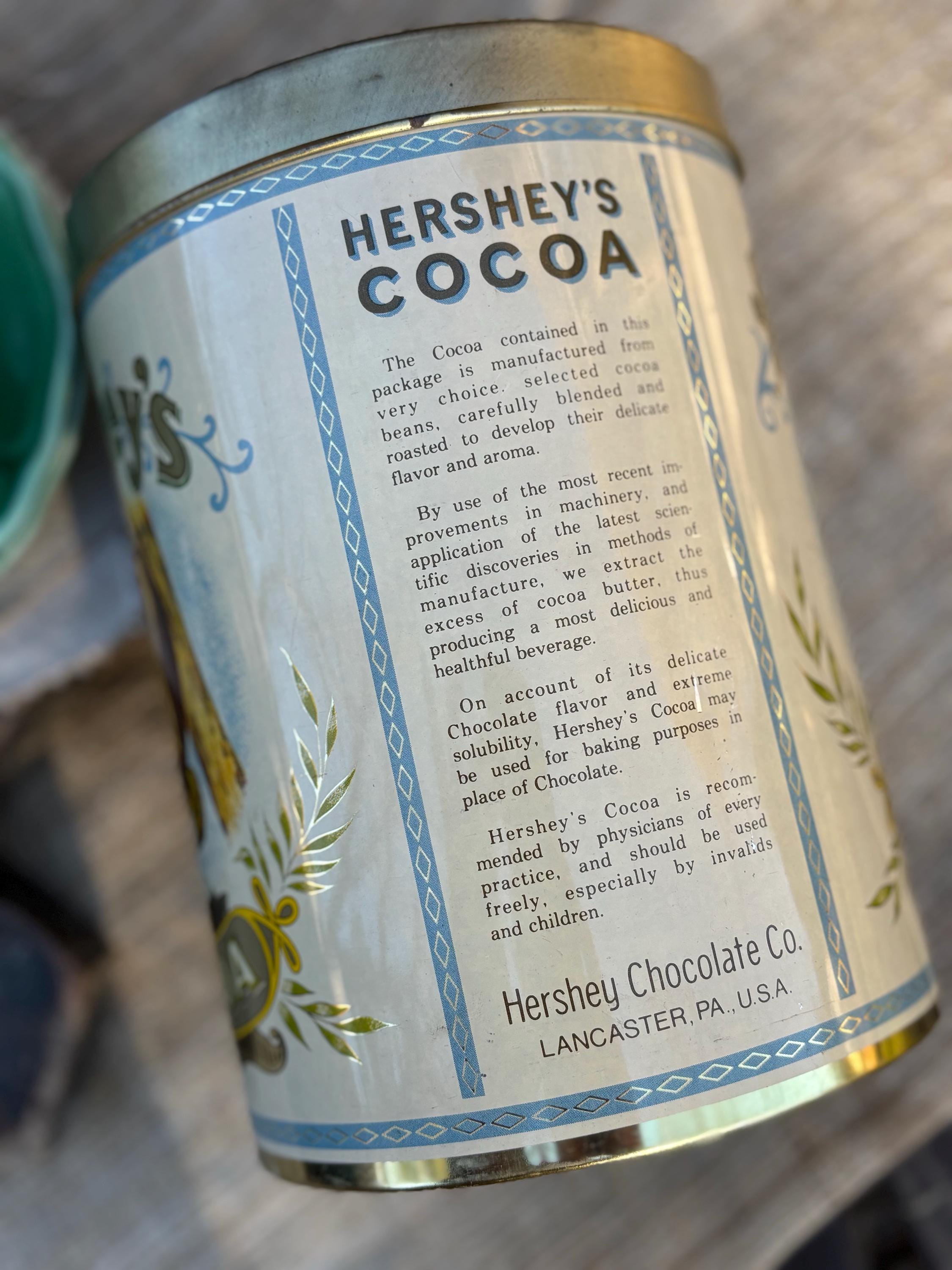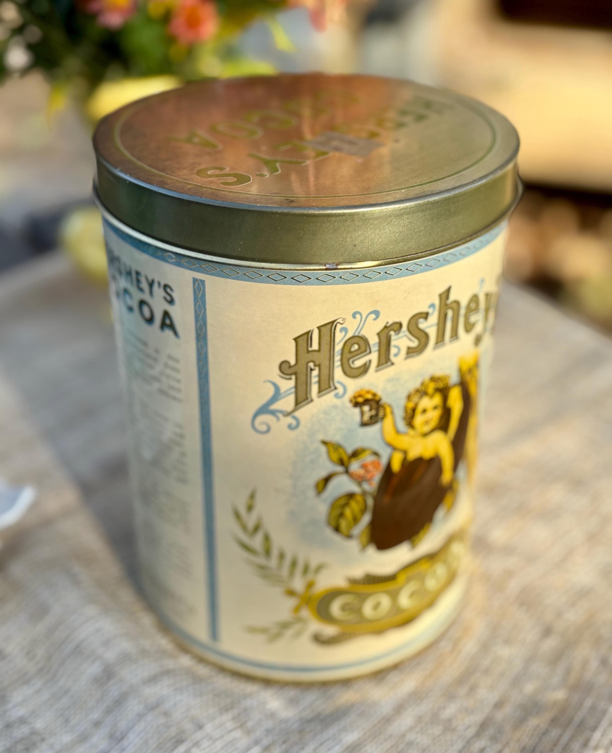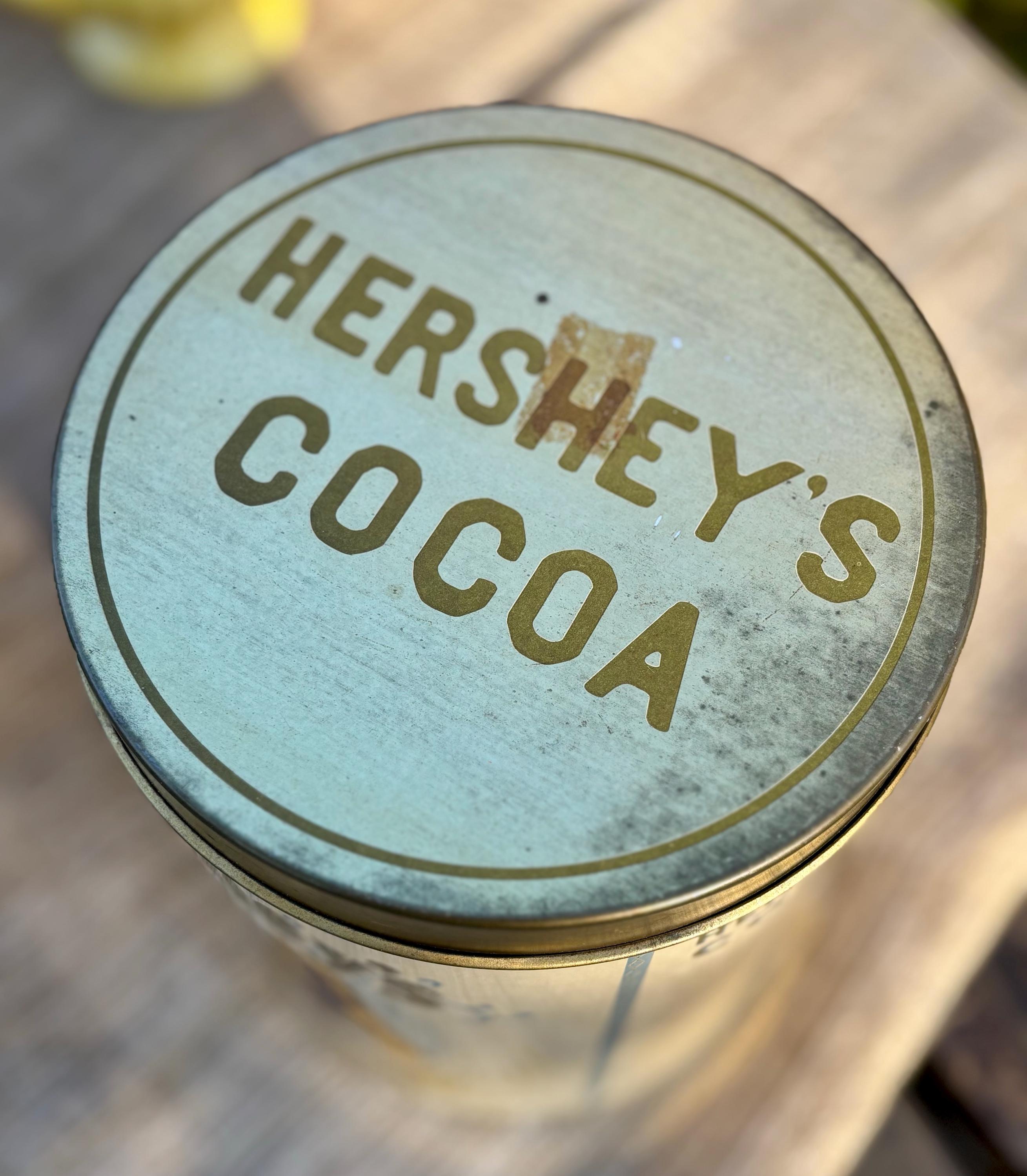 Vintage Hershey’s Cocoa Advertisement Tin. 7”5”inches tall by 5.5” inches in diameter.
