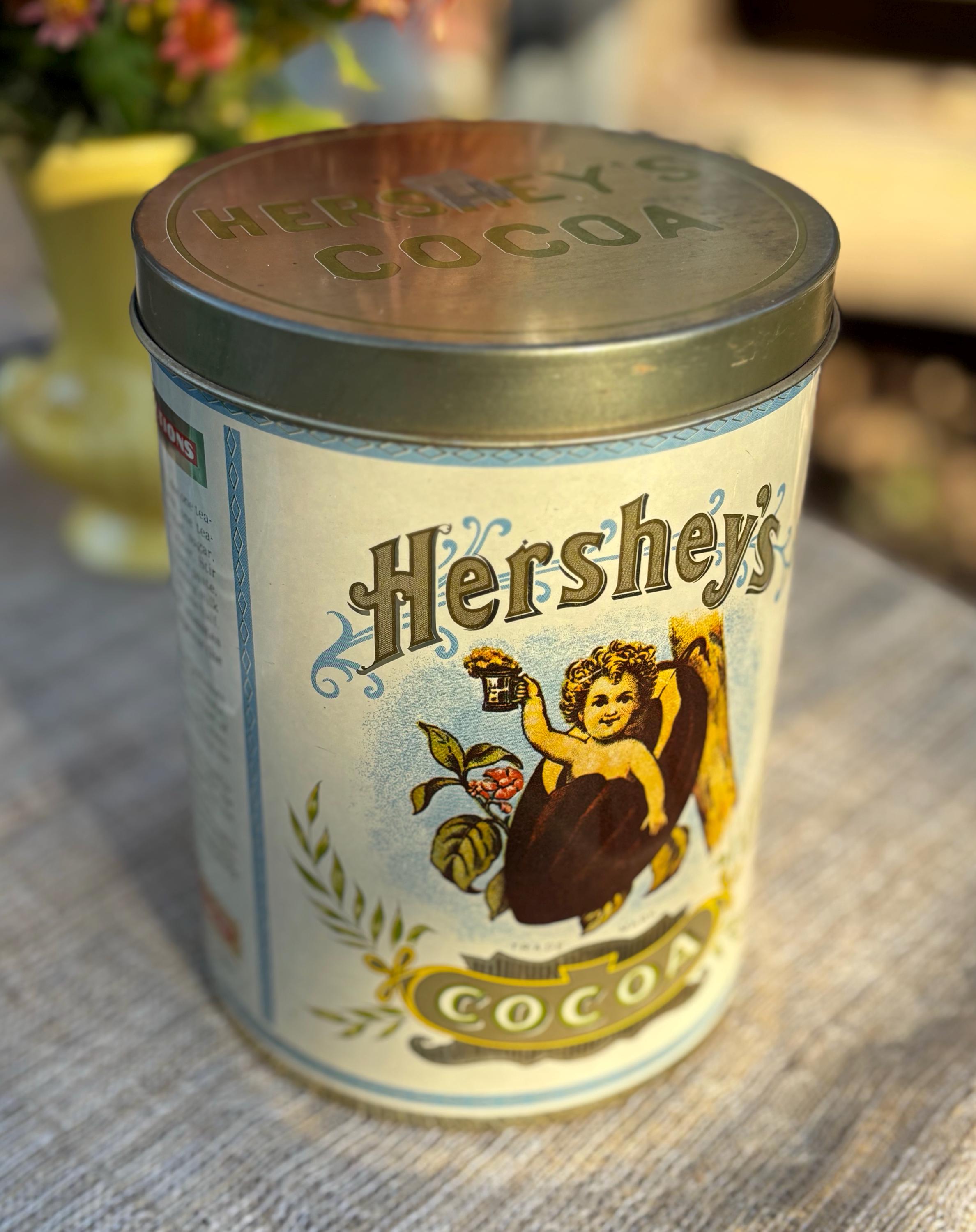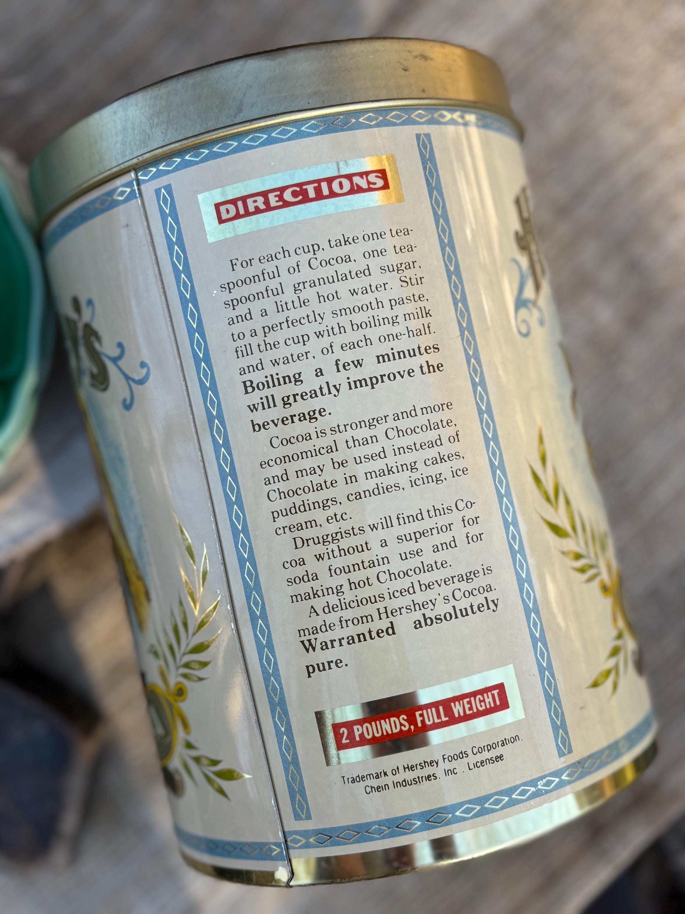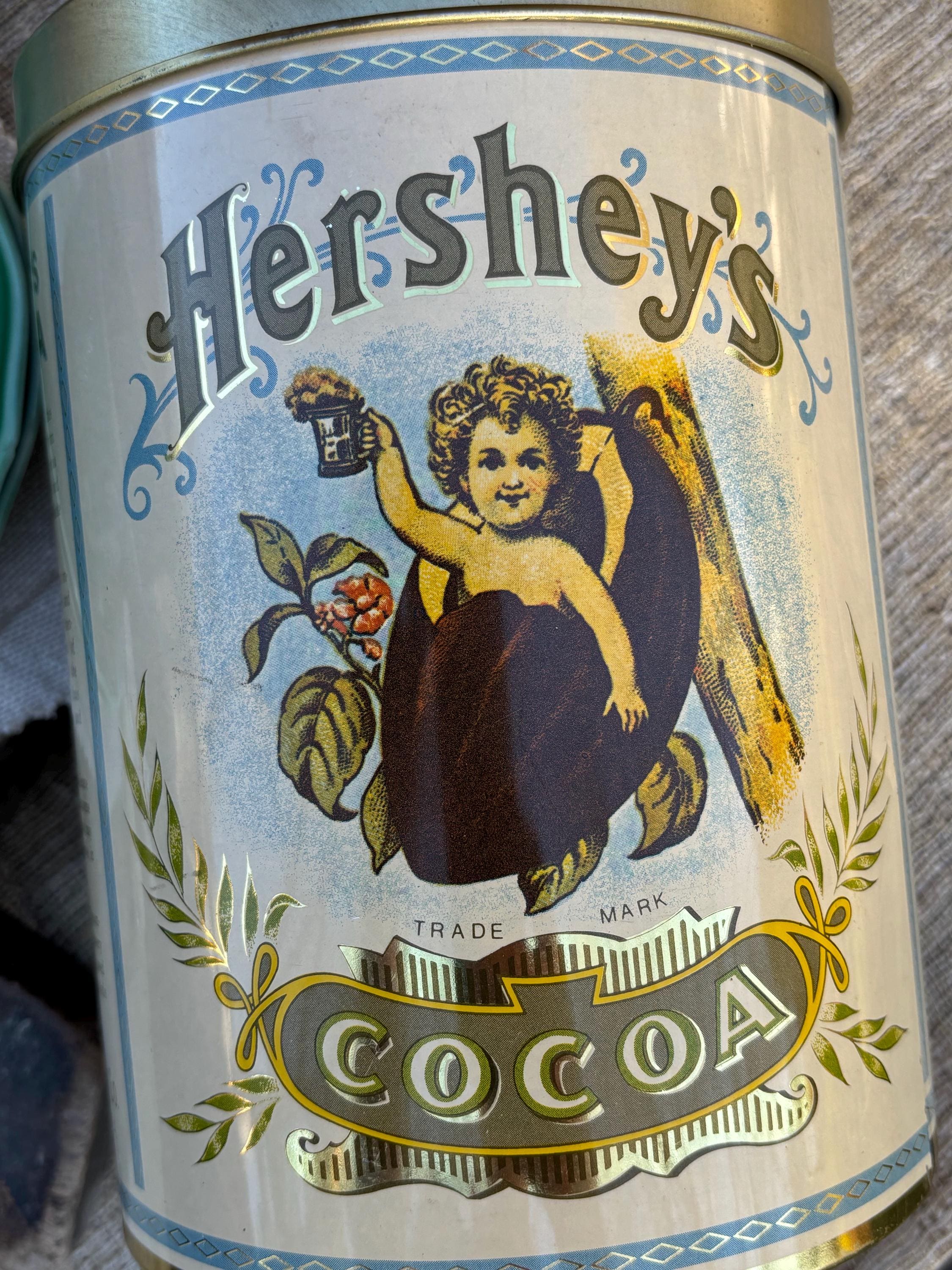 Vintage Hershey’s Cocoa Advertisement Tin. 7”5”inches tall by 5.5” inches in diameter.
