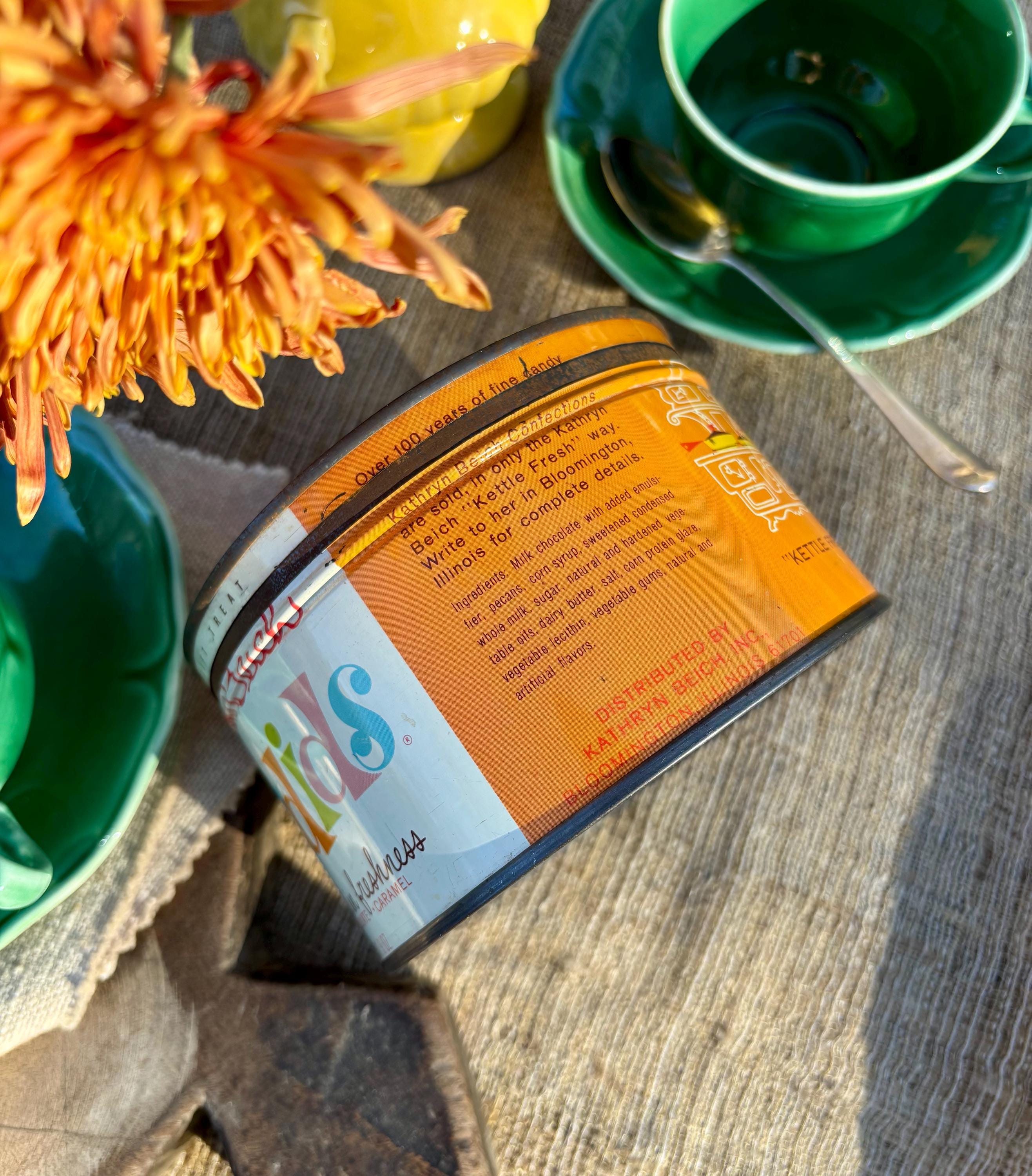 Kathryn Betch creator of these Candies. This tin is in Vintage condition with some fading and scratches as well as spots in the interior and on the bottom.See all image closely for Details.