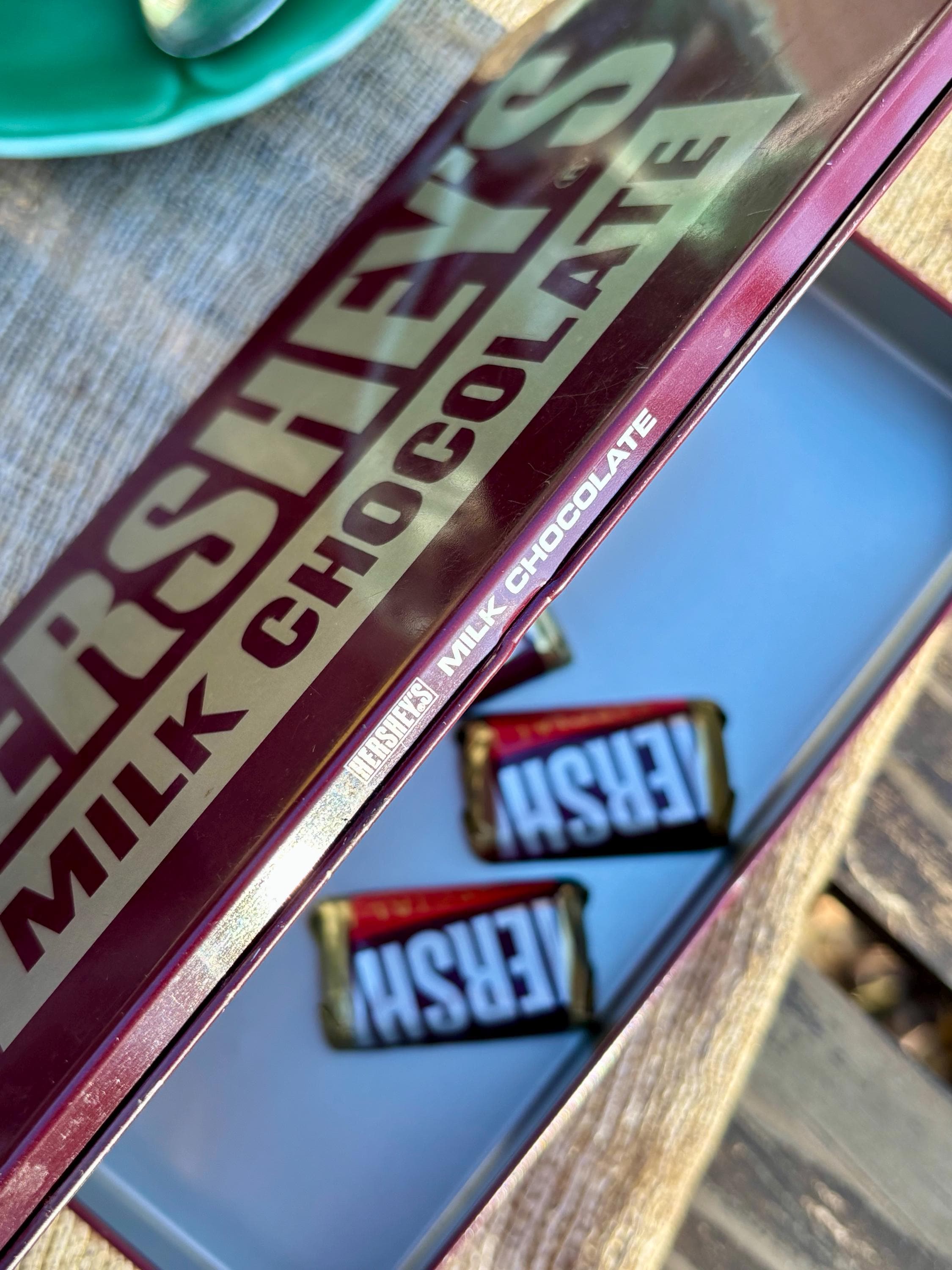 ⭐️Vintage ⭐️Hershey’s Milk Chocolate Trinket/Candy Tin Box with Hinged Lid.