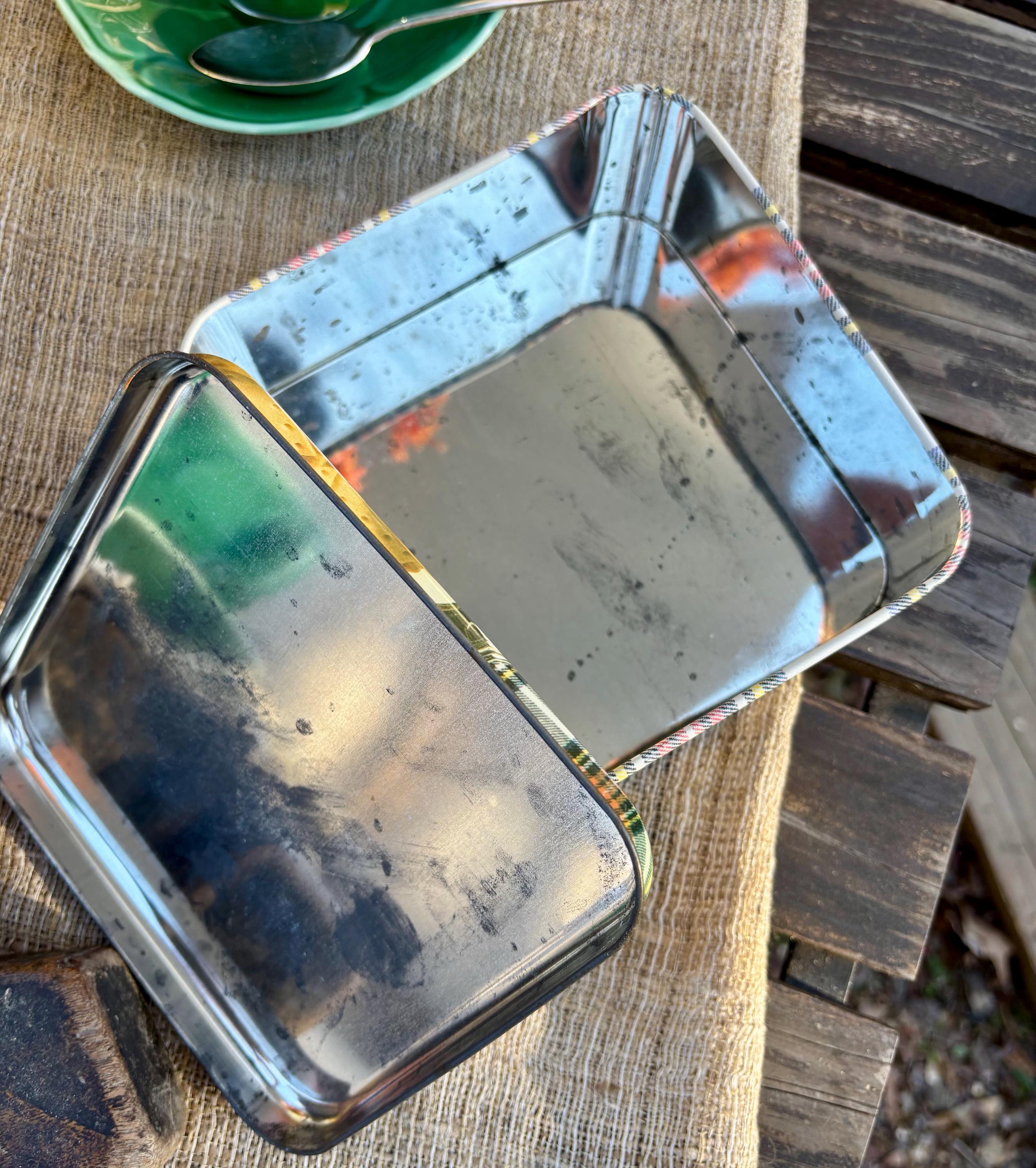 Vintage Square Tin 6” Inch by 6” Inch and 2.5” Inches tall/deep.