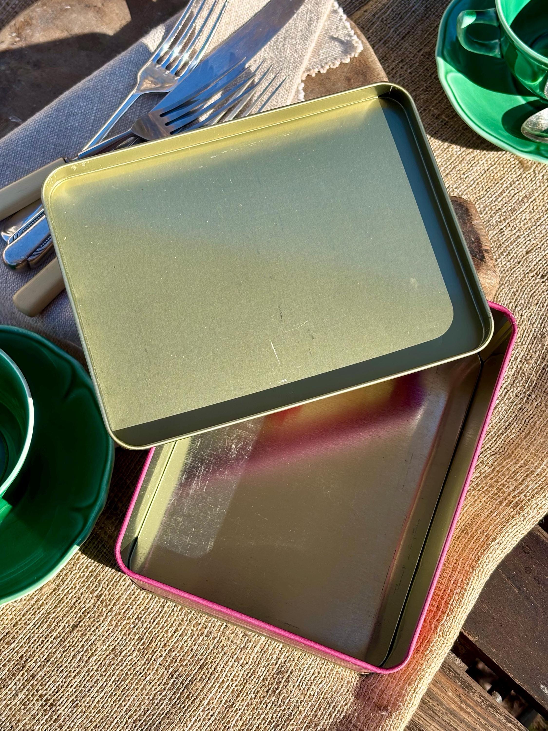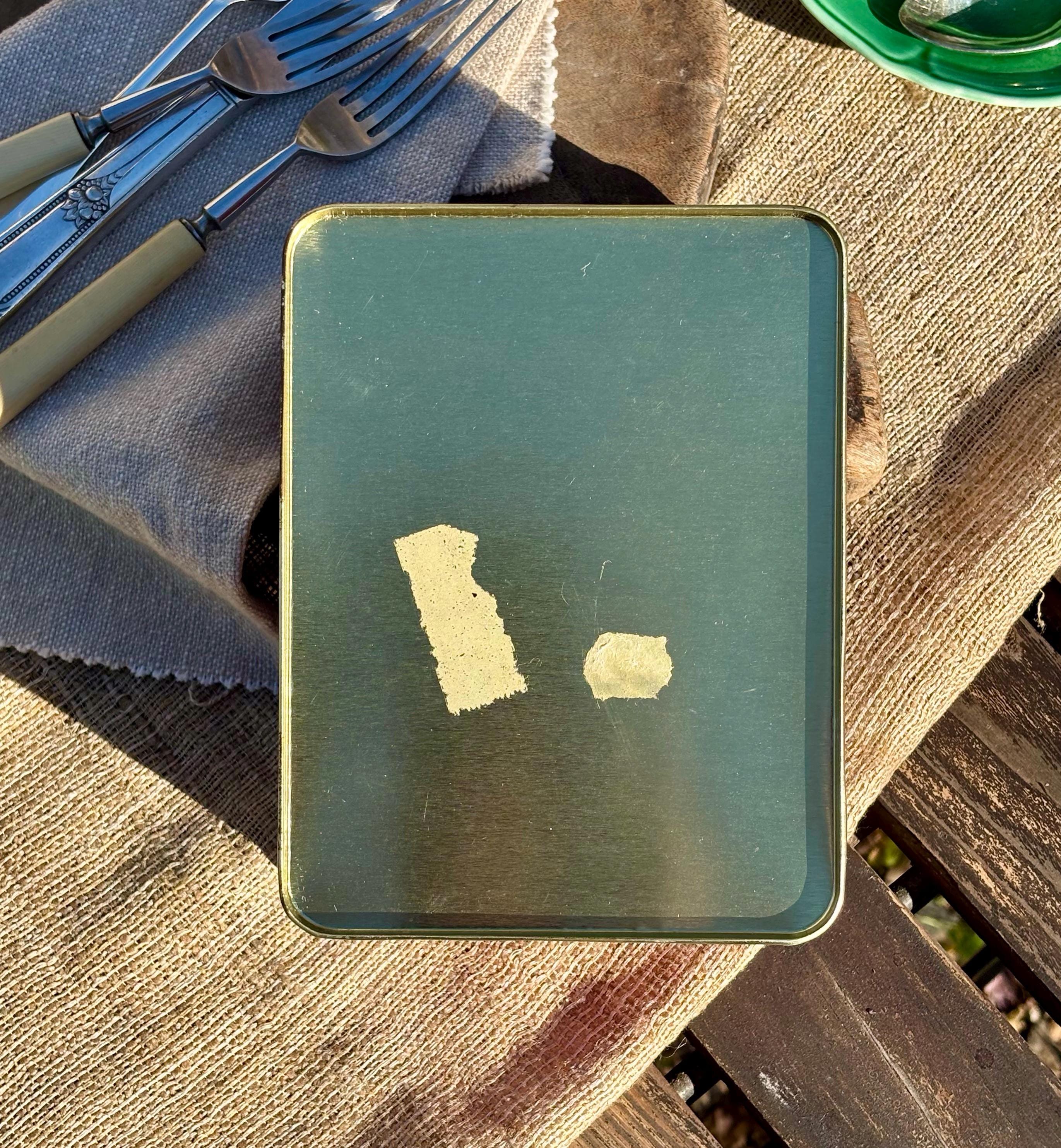 Tin is from The Silver Crane Co and is 6.75” inches by 5.25” inches by 2.75” inches tall.