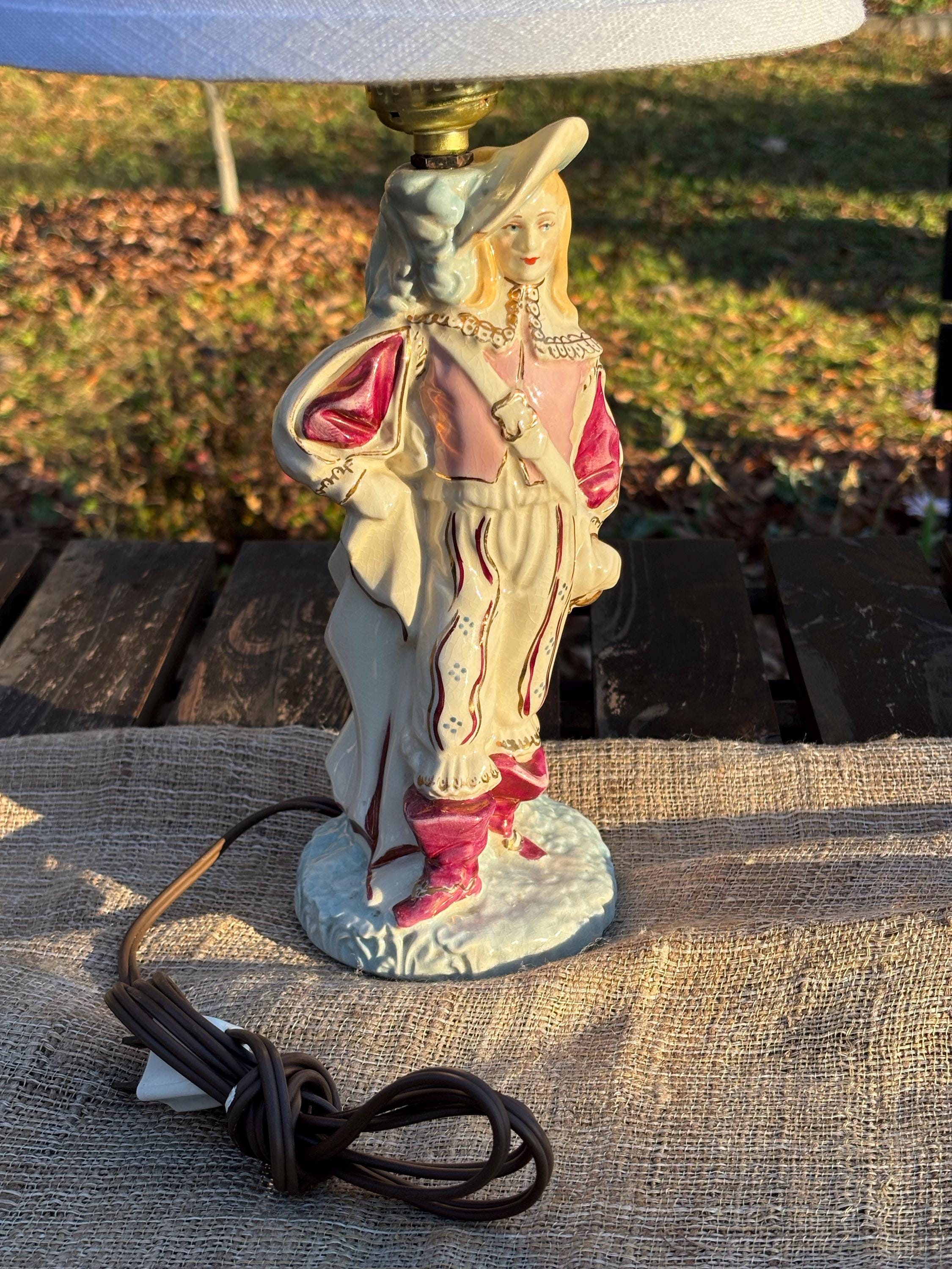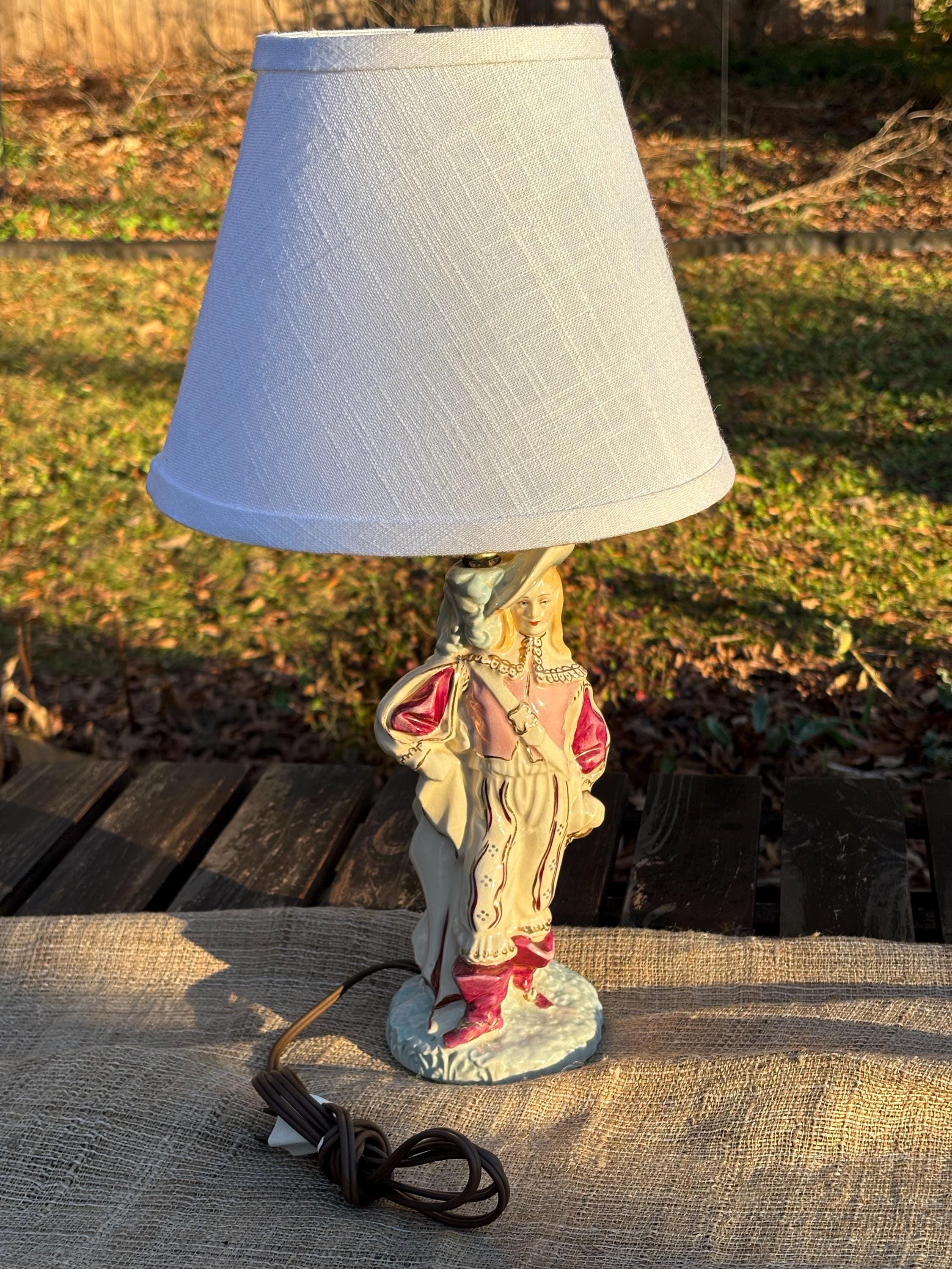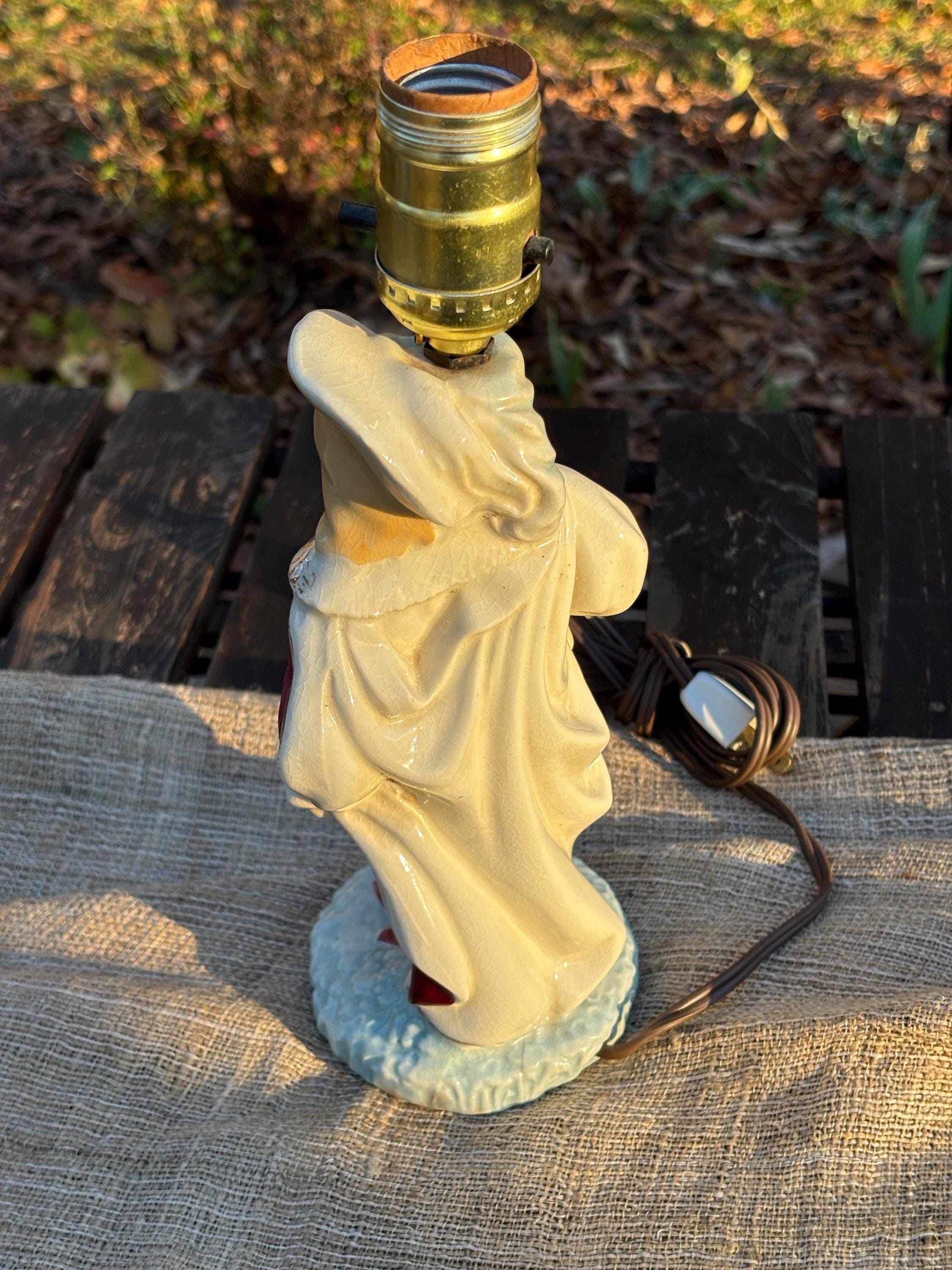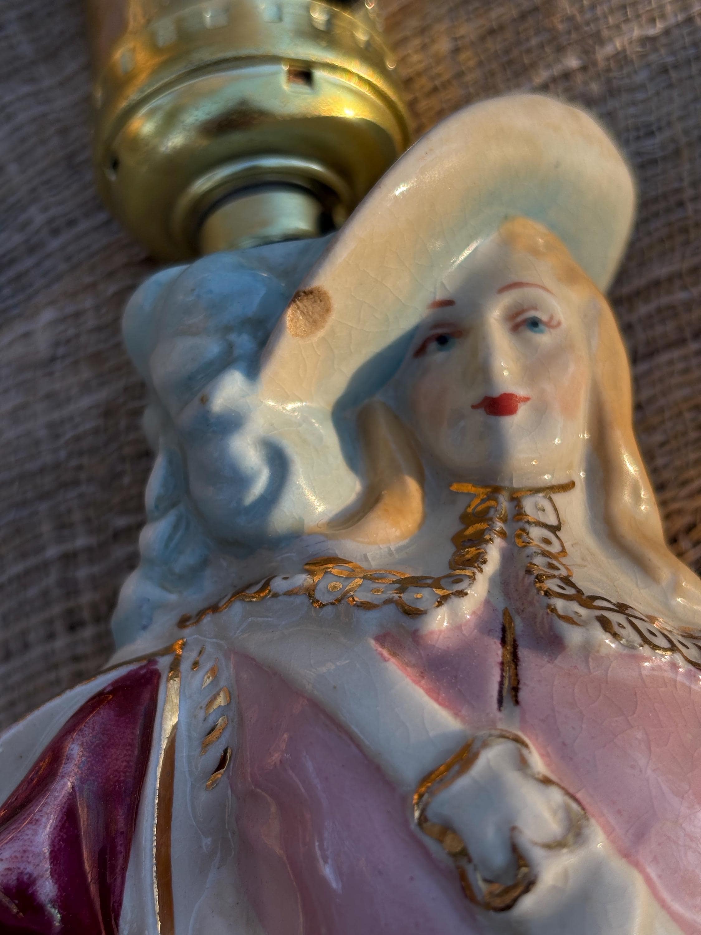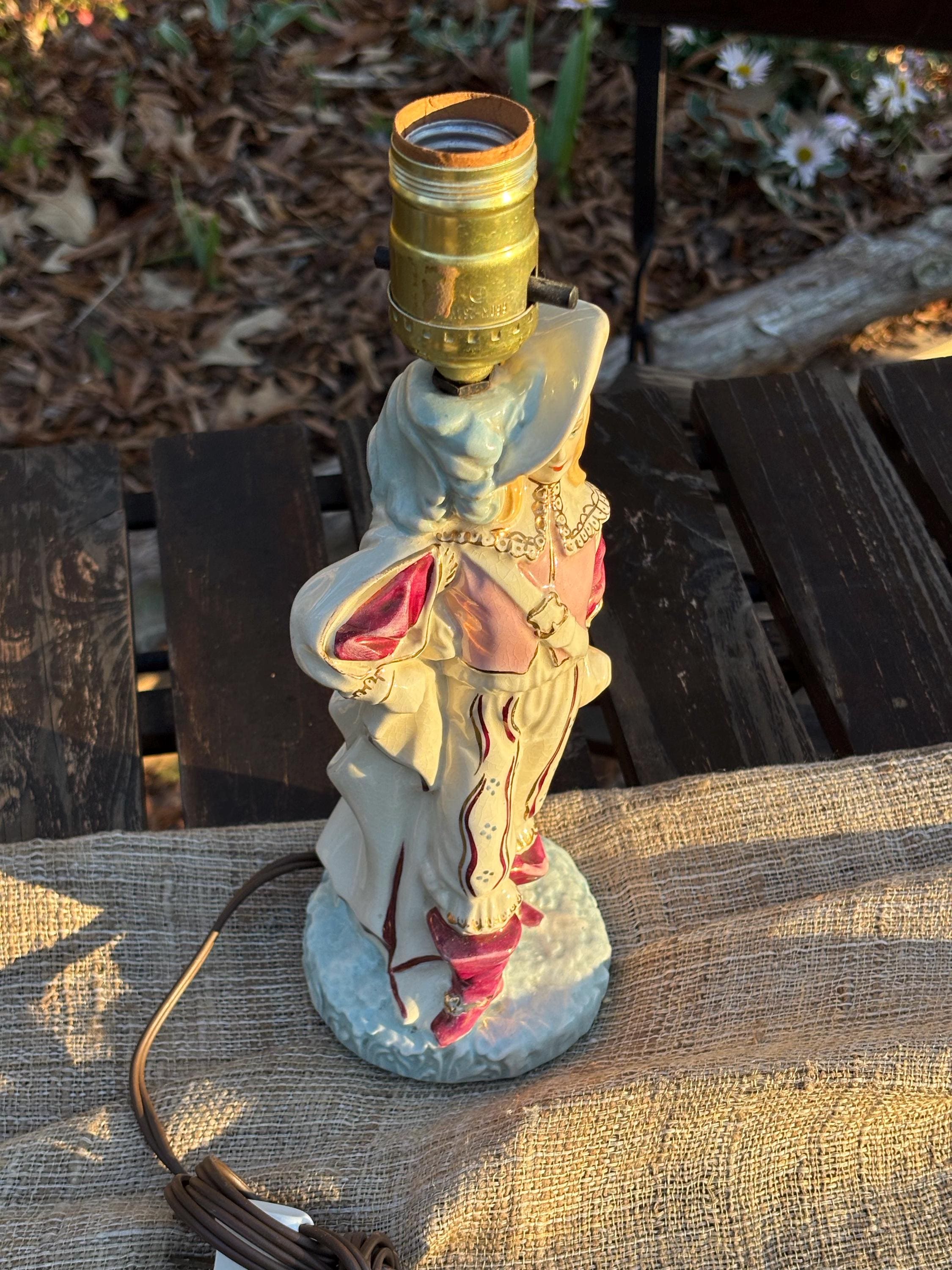 Vintage lamp with new wiring and Bulb Socket. One small chip on the Brim of the Hat….see images closely for details mentioned!