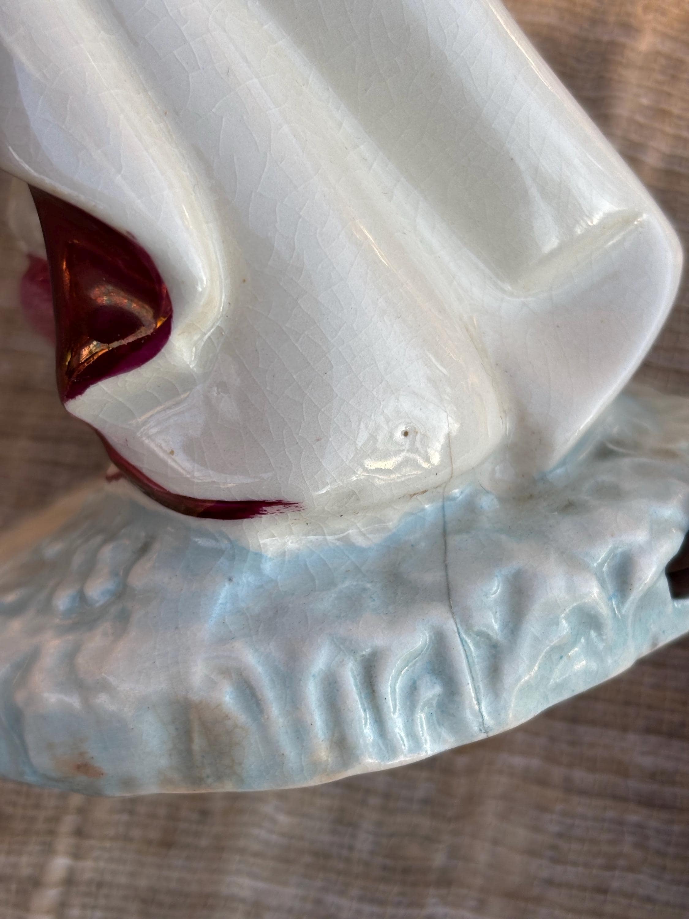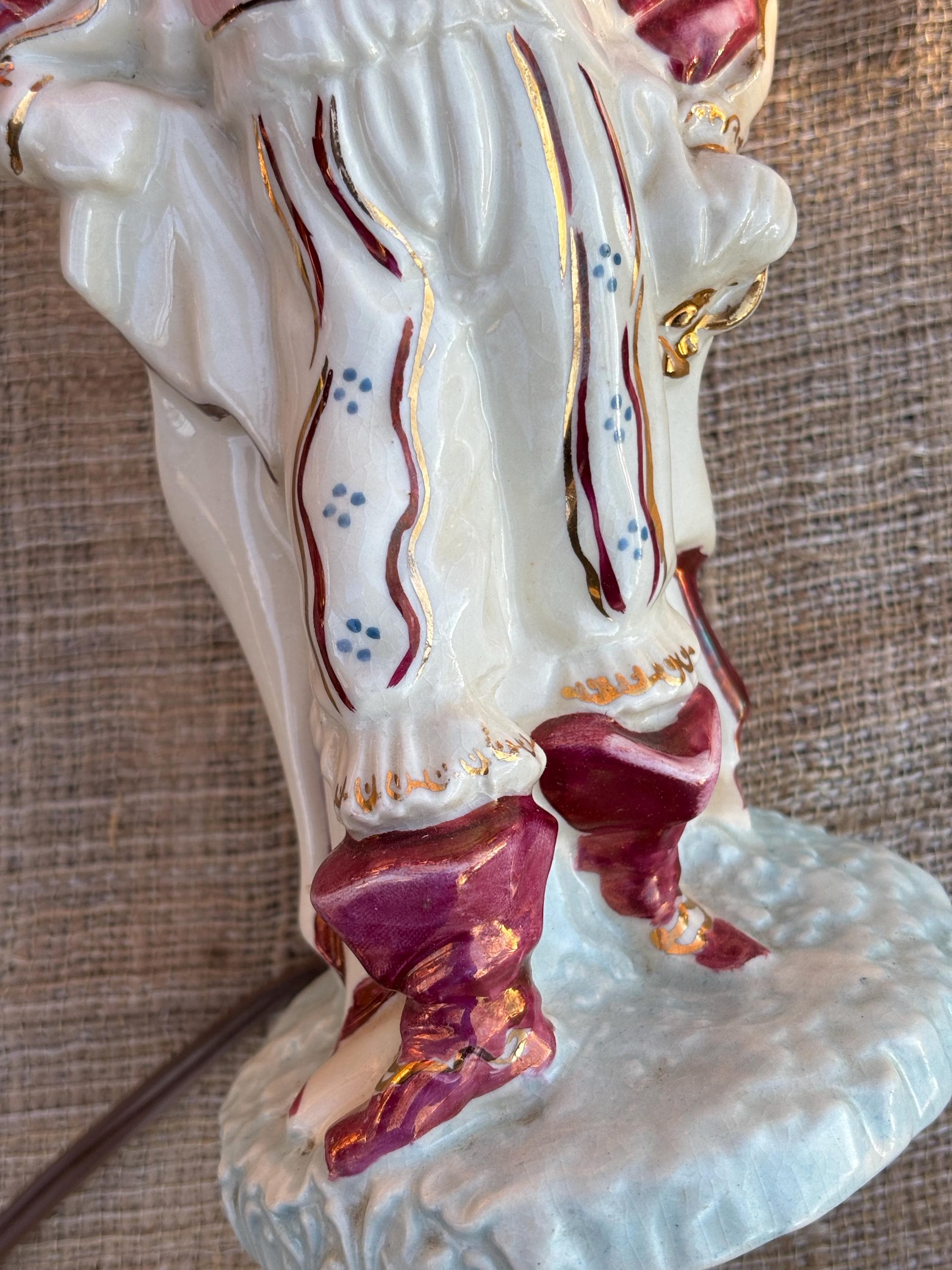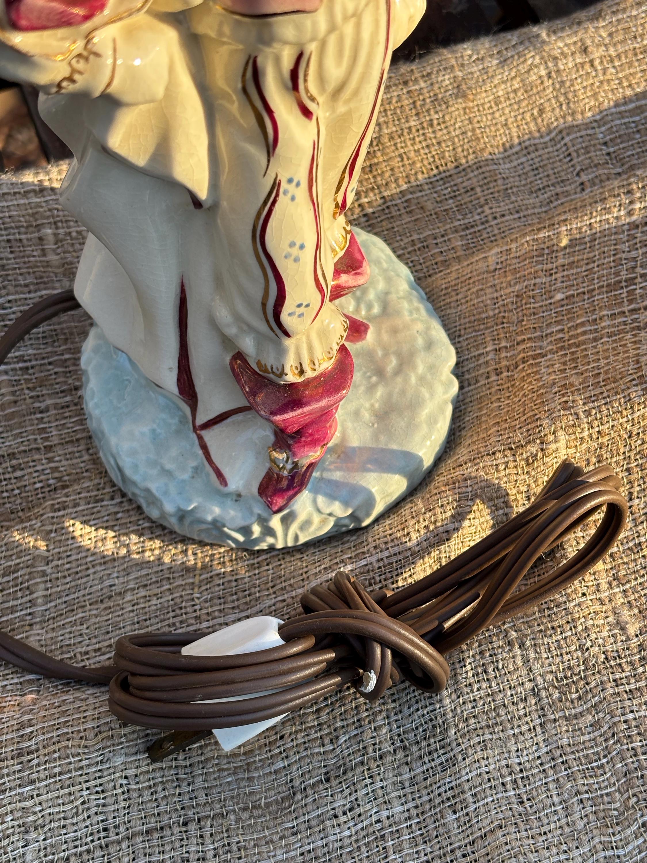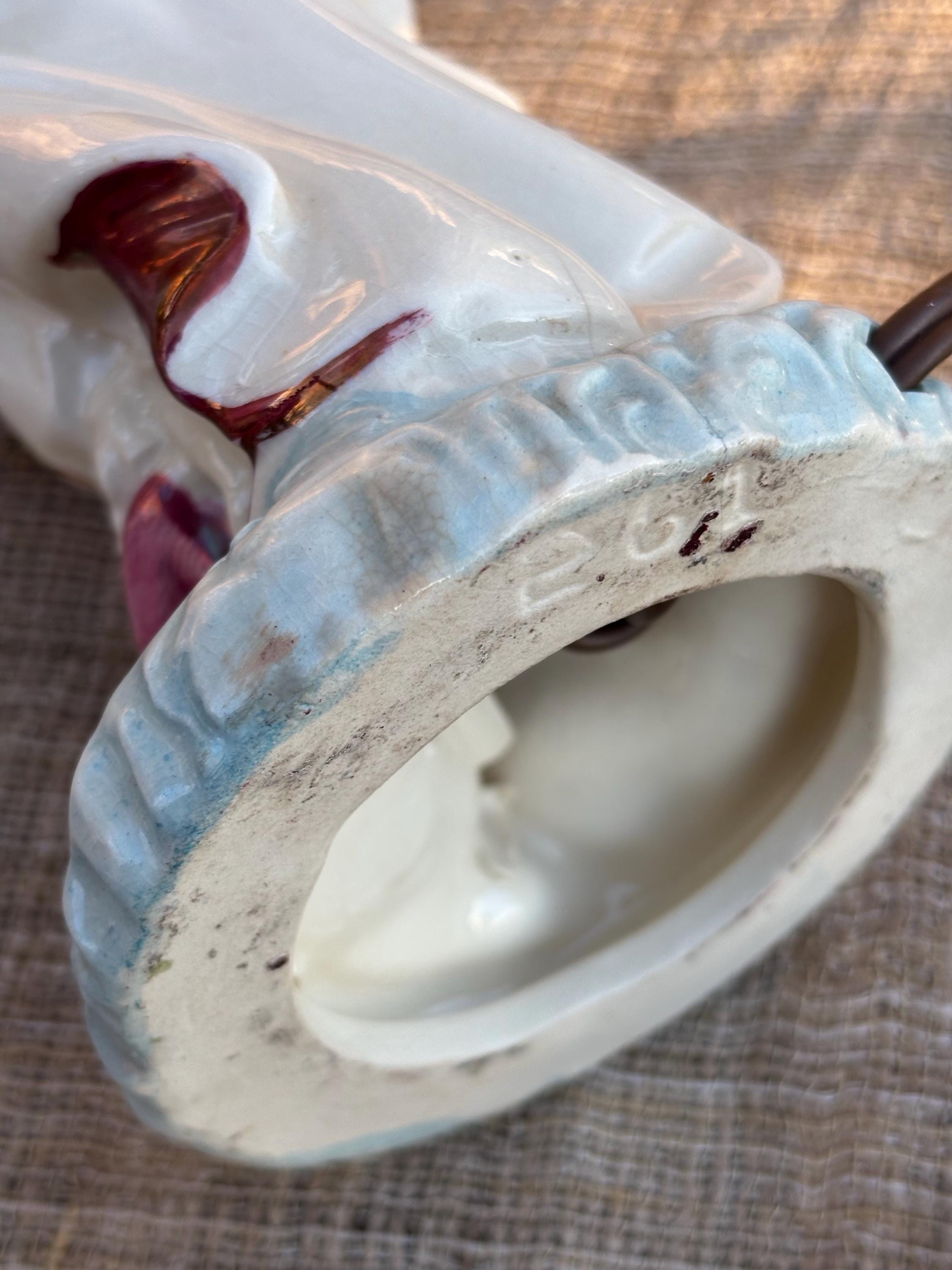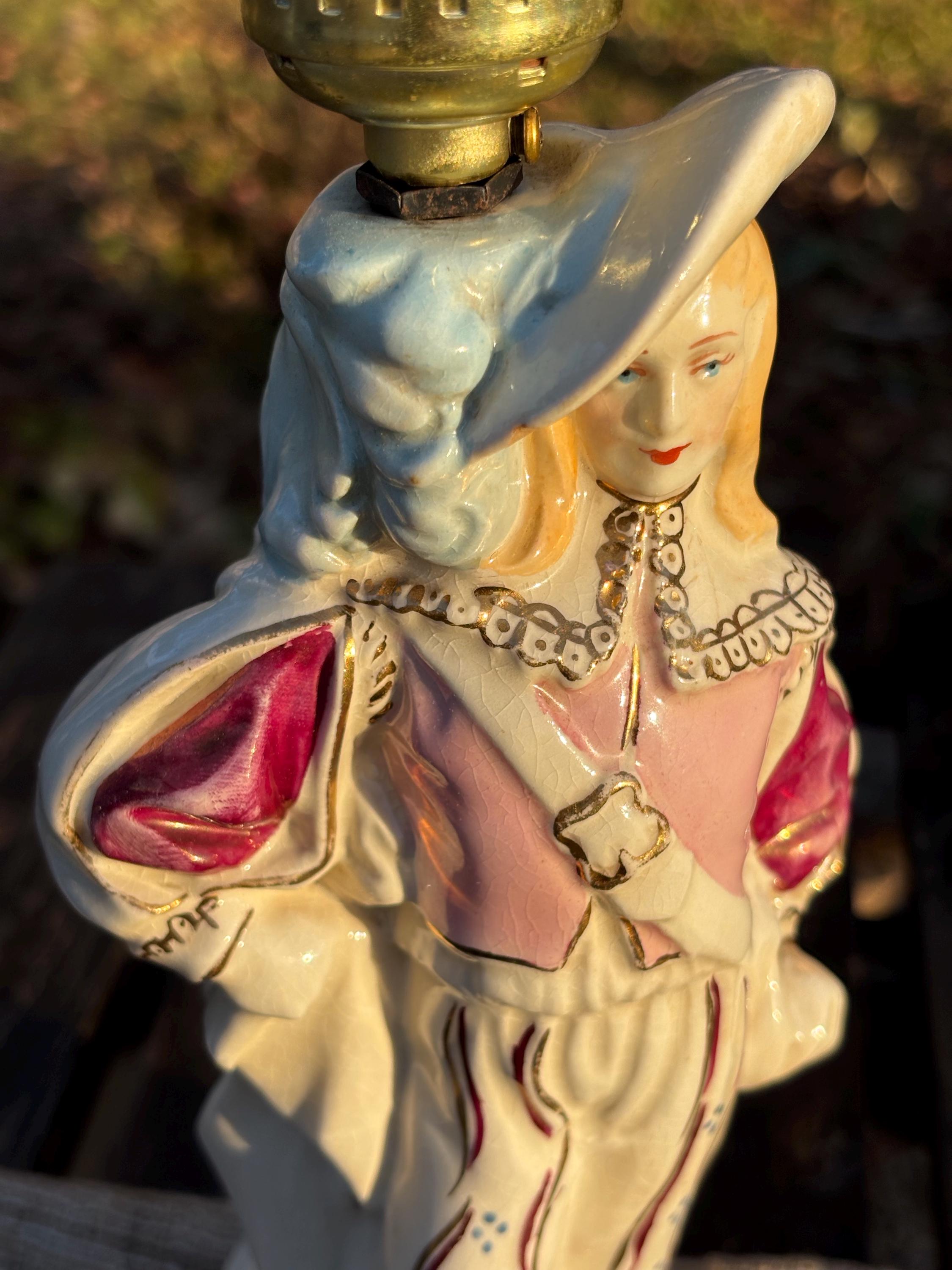 Vintage lamp with new wiring and Bulb Socket. One small chip on the Brim of the Hat….see images closely for details mentioned!