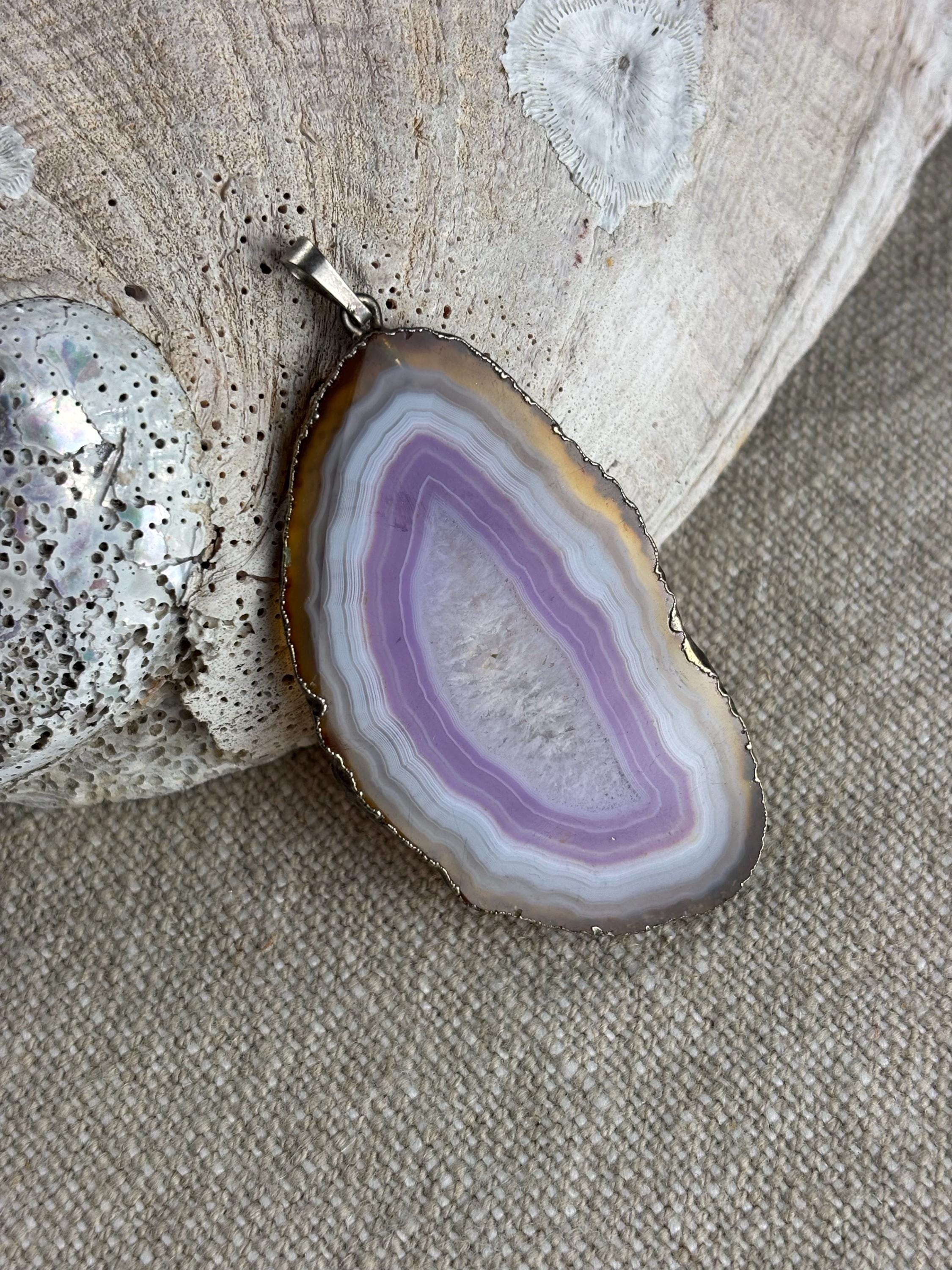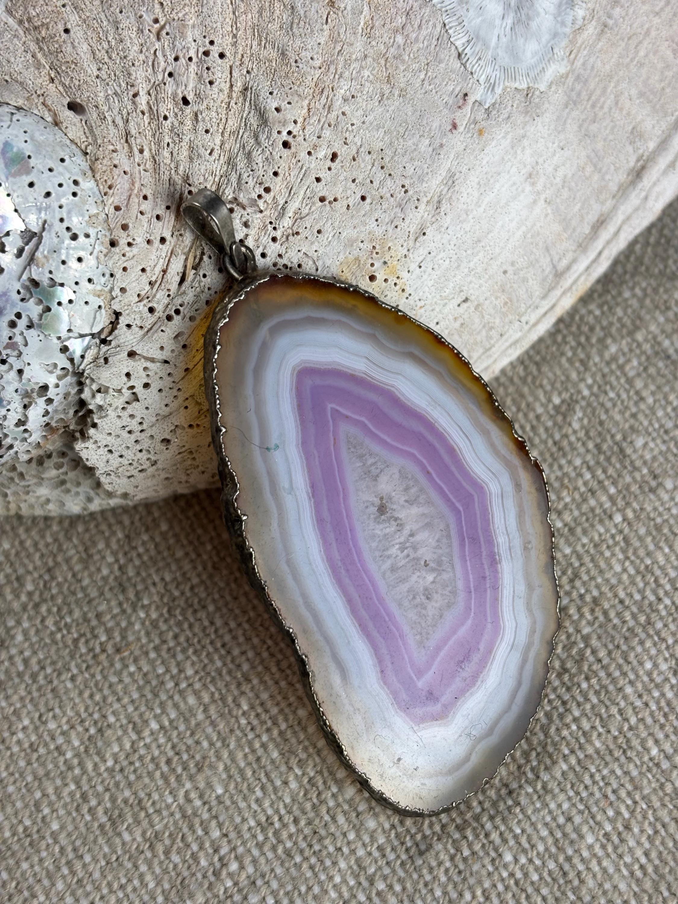 Vintage Polished Agate Geode Stone/Crystal Pendant.