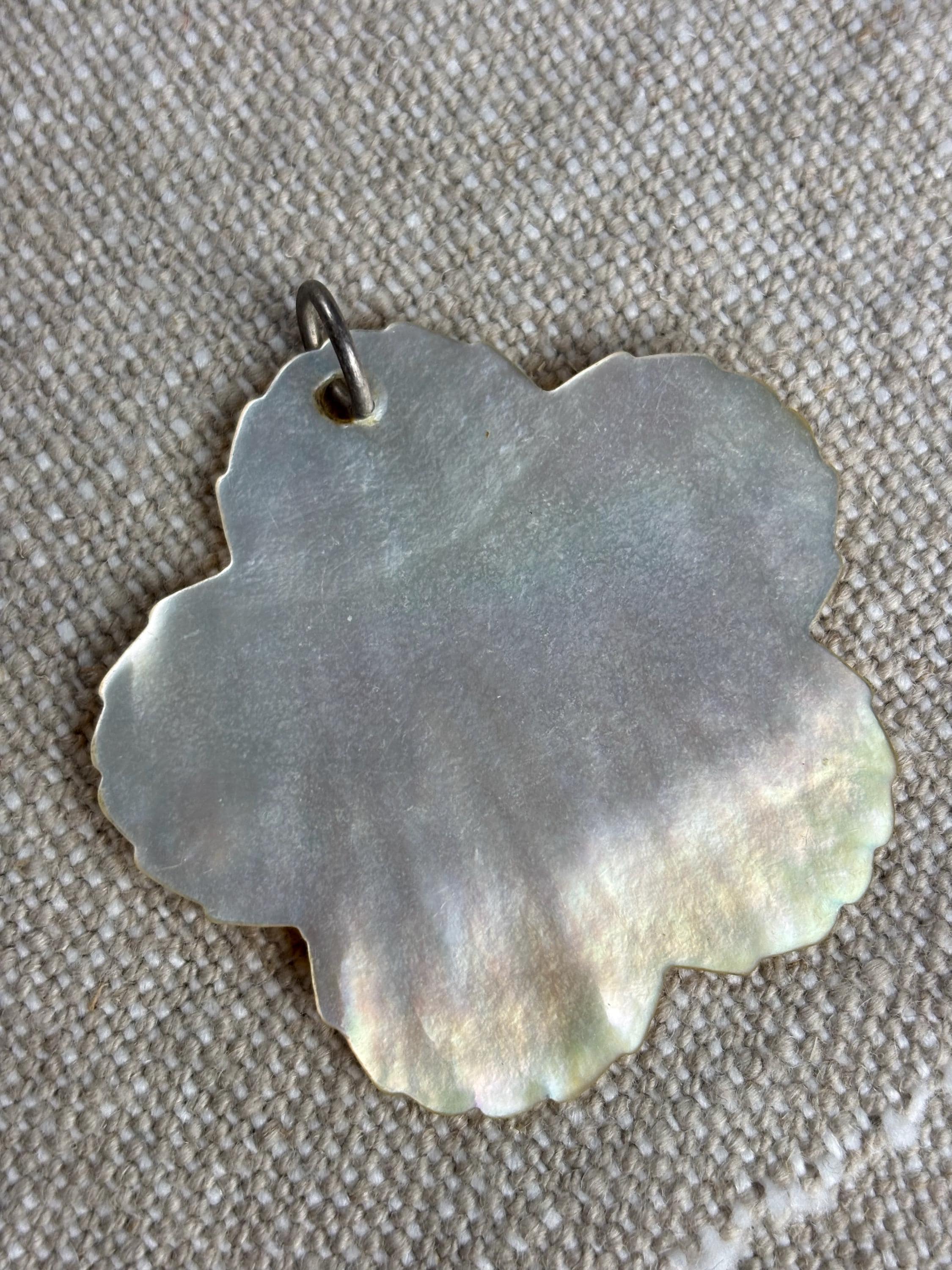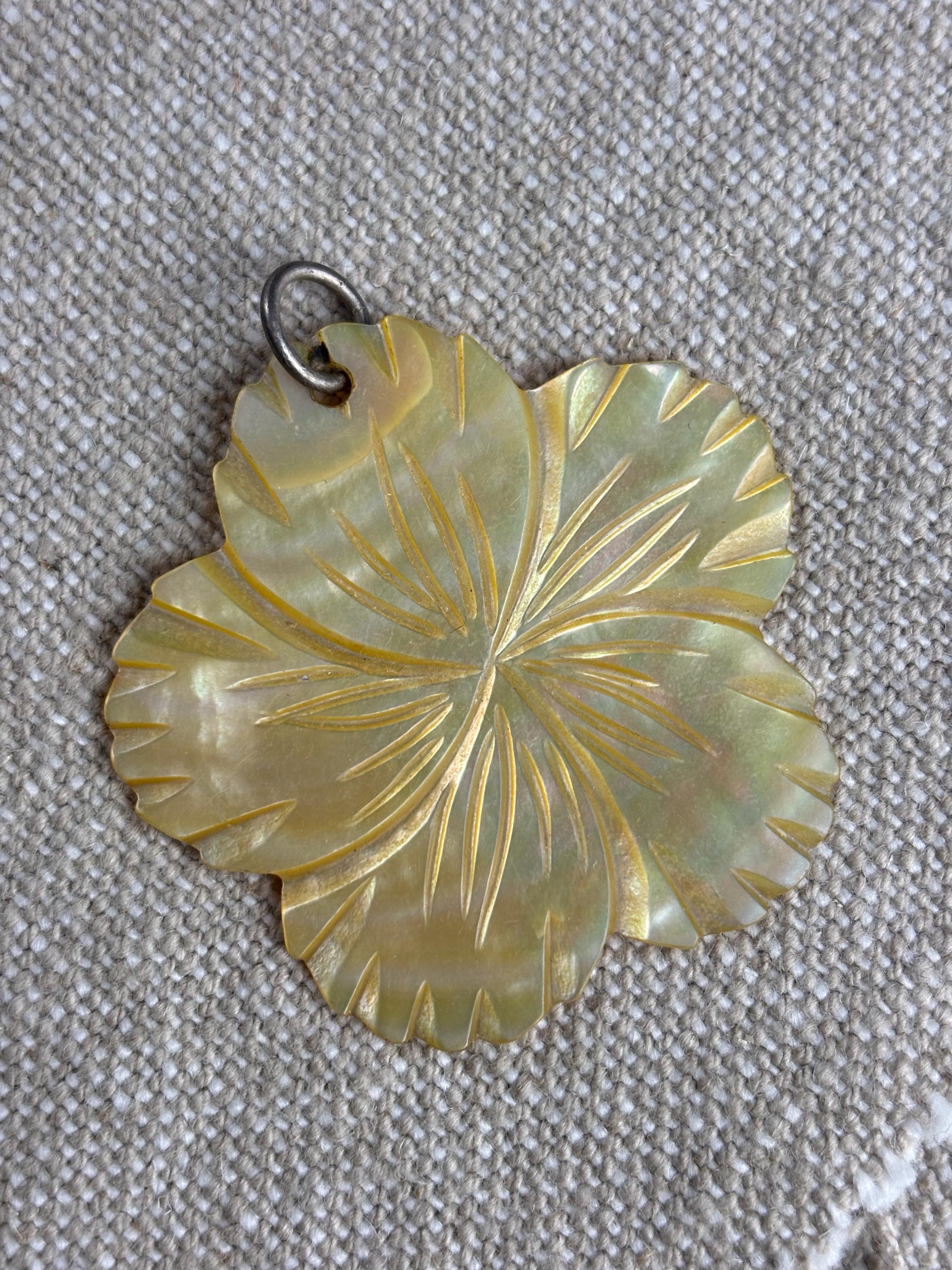 Vintage Mother Of Pearl Tropical Flower Pendant.