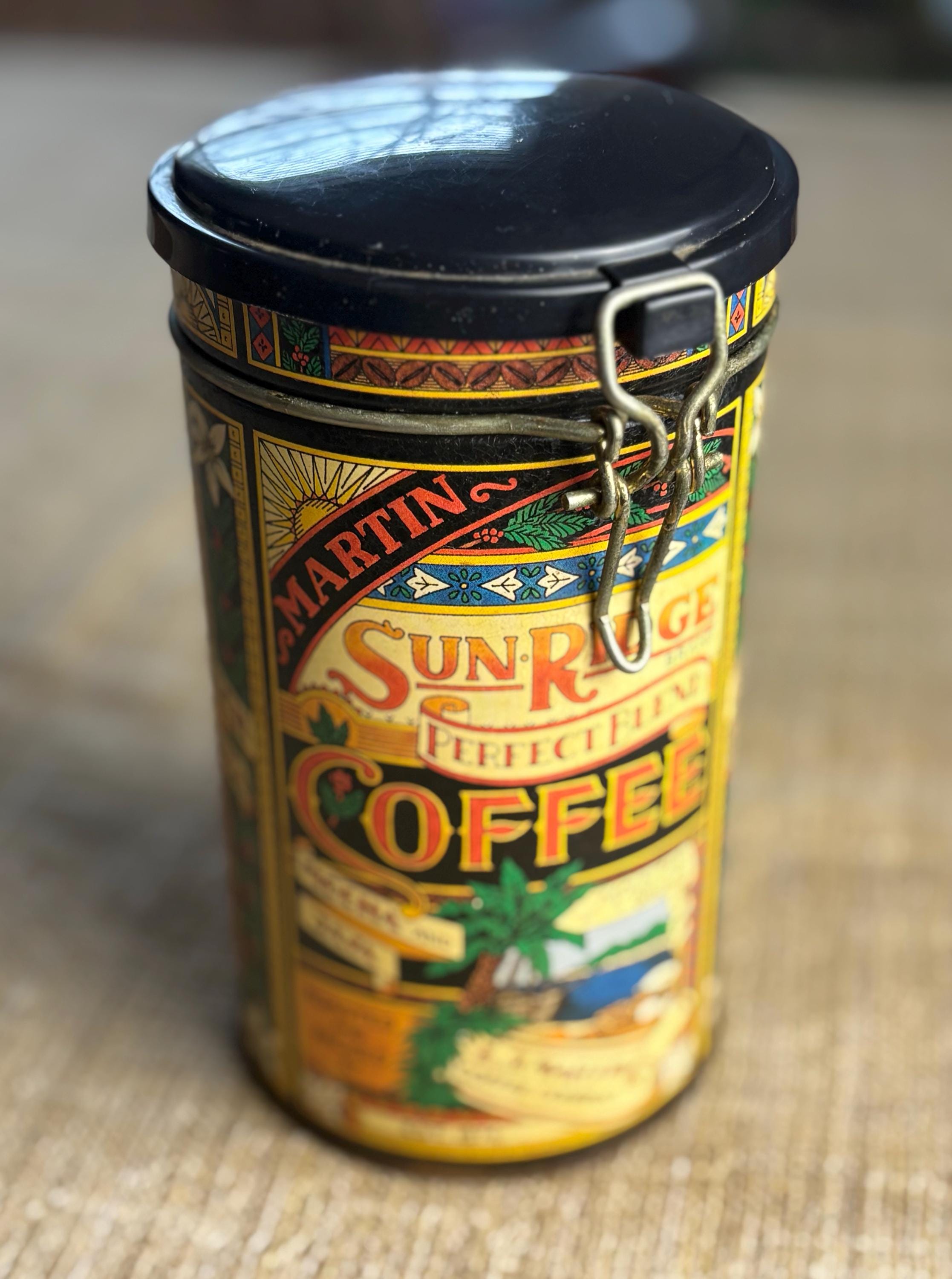 JR Martin Sun Ridge Collectible Coffee Tin, all other tins in the Last image are sold separately………see my listings for more information.
