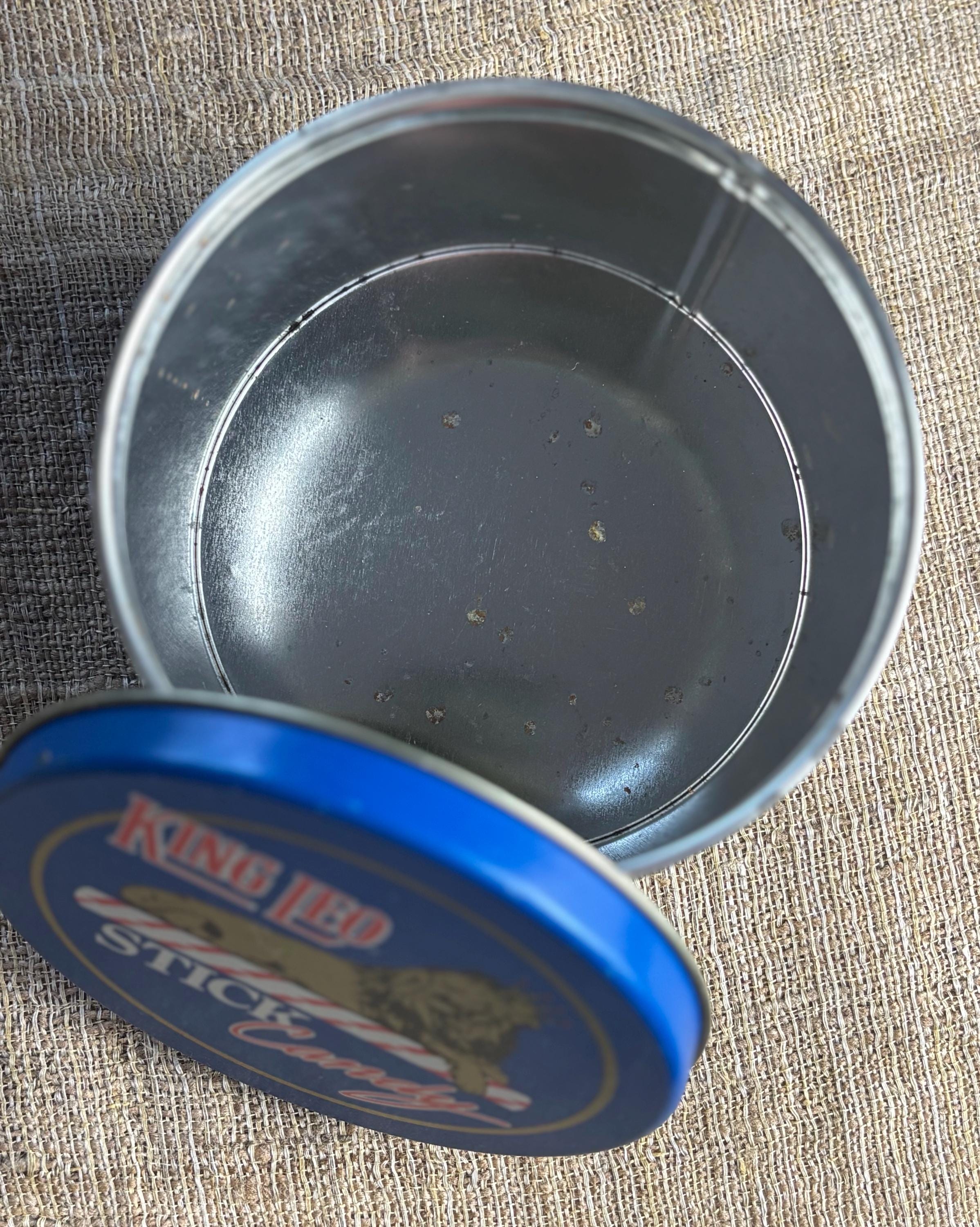 Vintage Candy Tin by King Leo. Vintage tin only, contains no Candy!