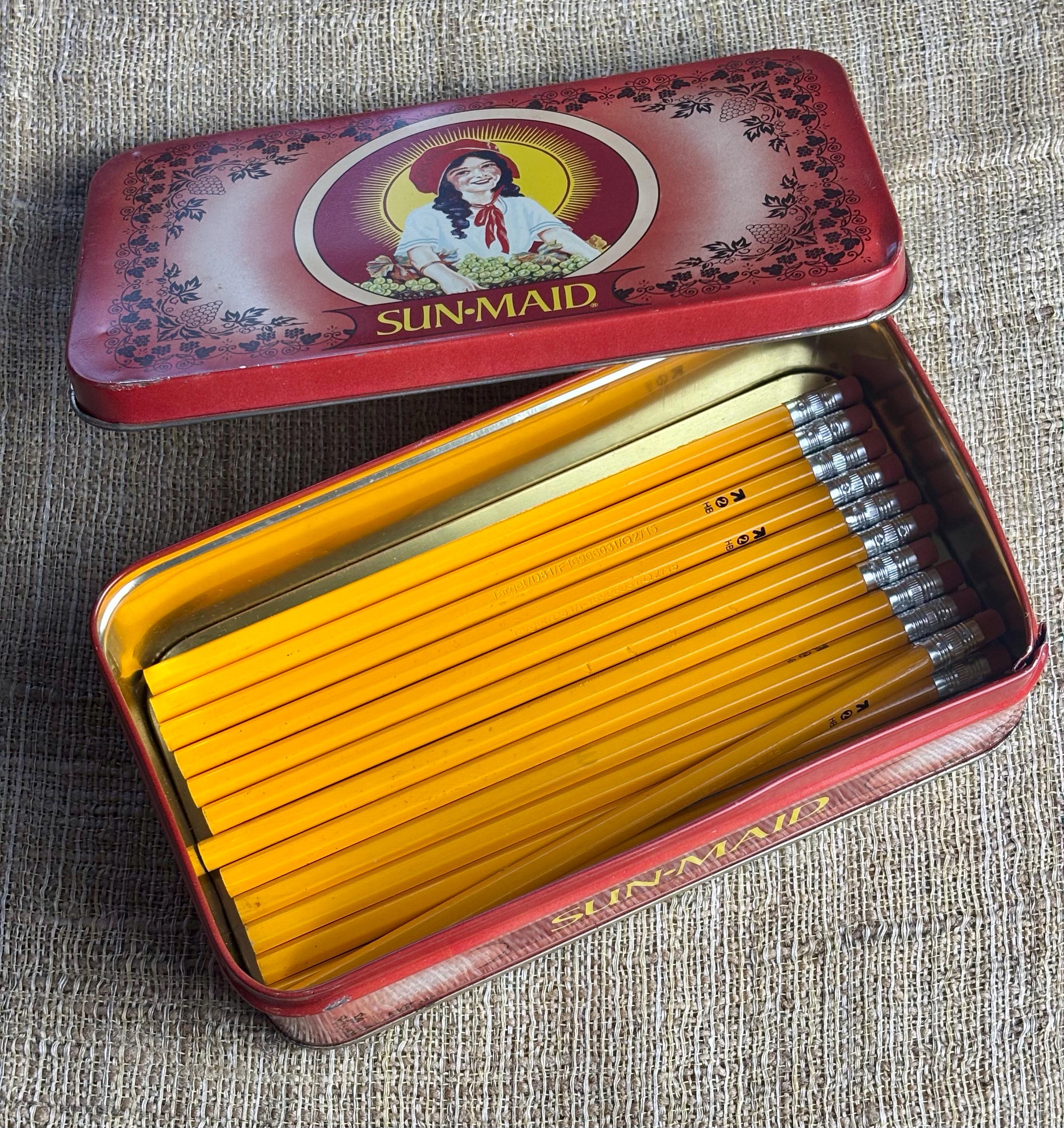 Great Little box for storage, such as pencils and pens……Pencils are not included, just for size reference. Contains NO RAISINS! Tin Only