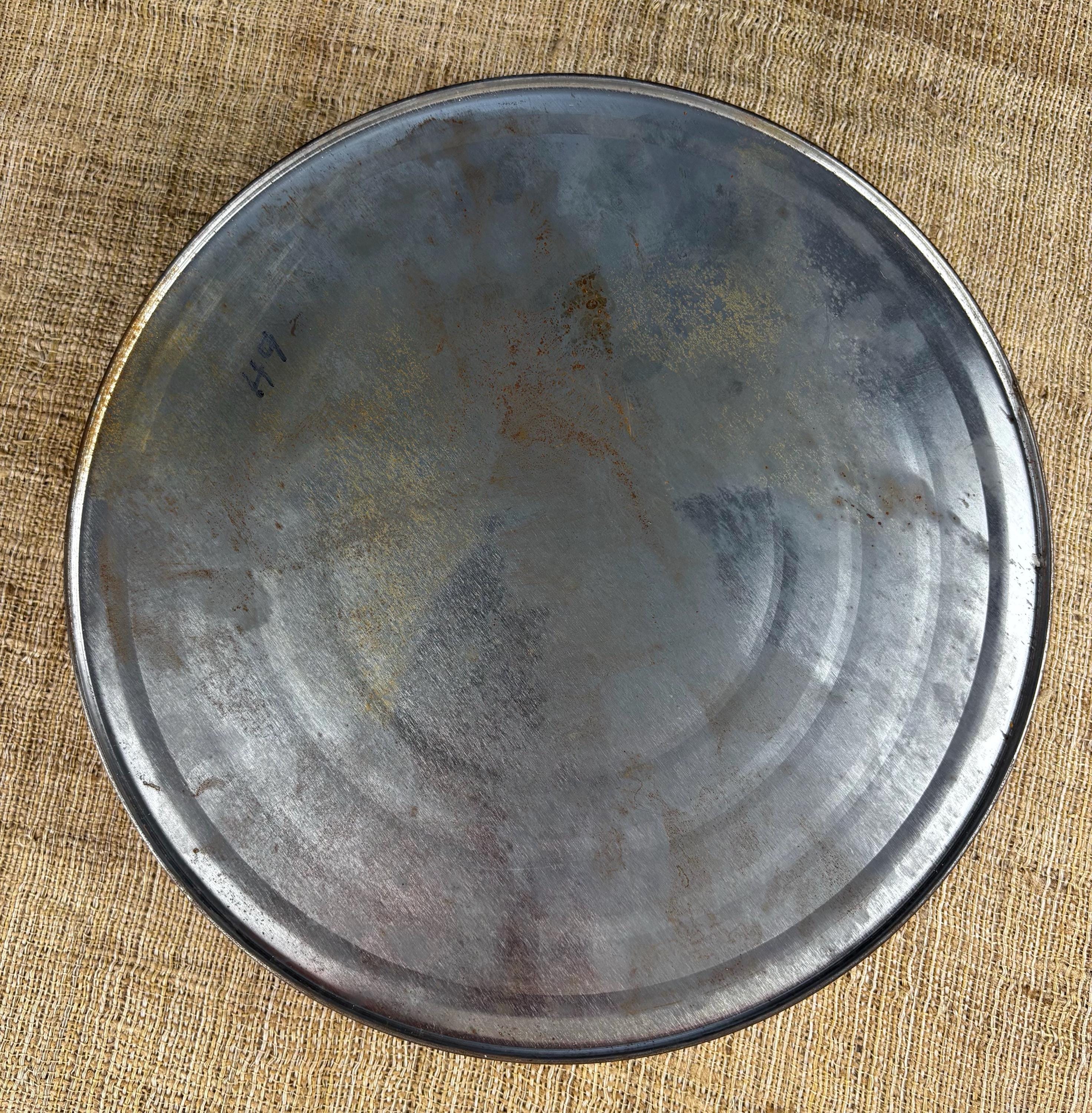 10”inches in diameter by 2” inches tall/deep, in good Vintage condition with some wear, spotting and scratches. Vintage Gift tin or Great for a White Elephant Gift.