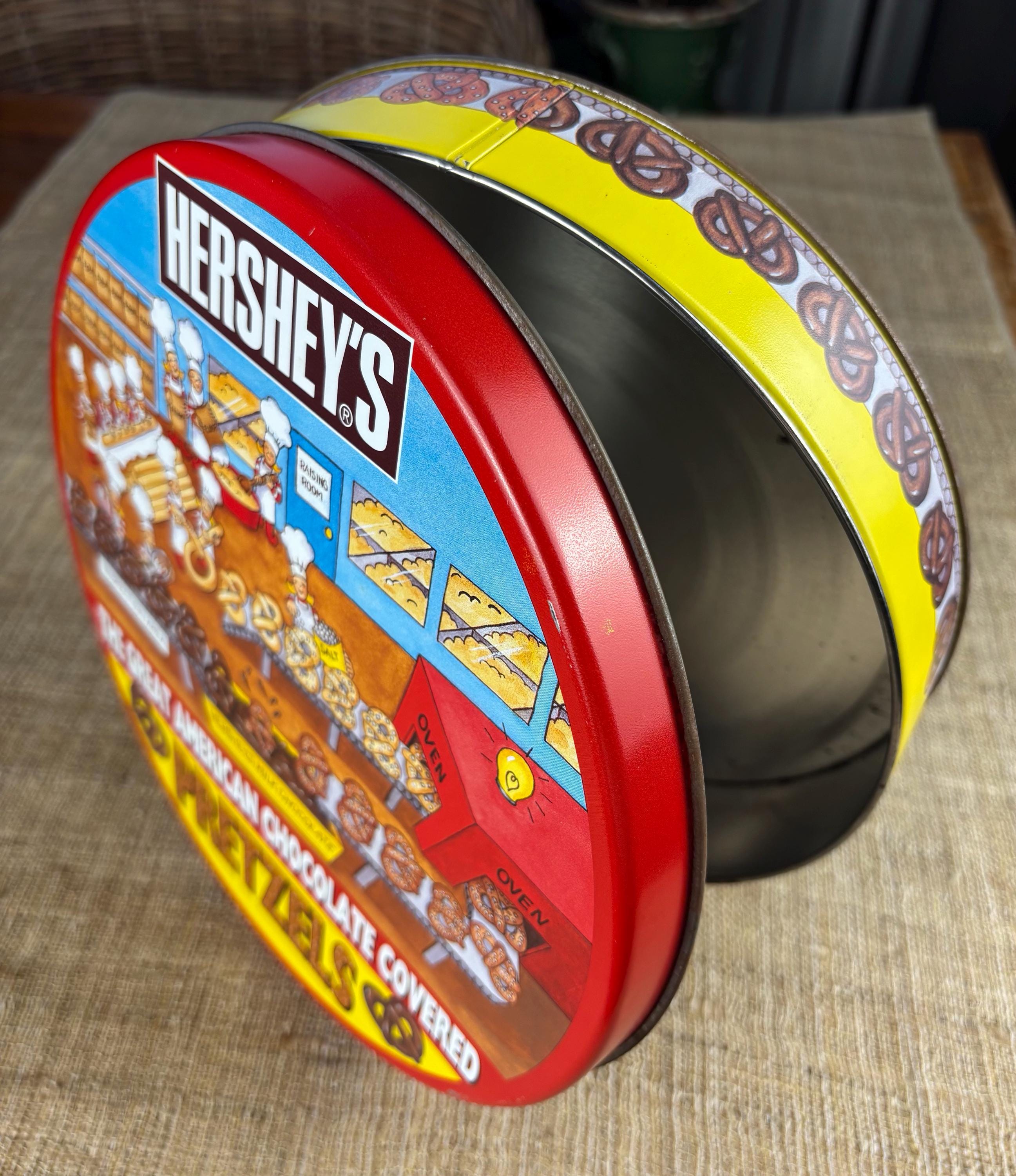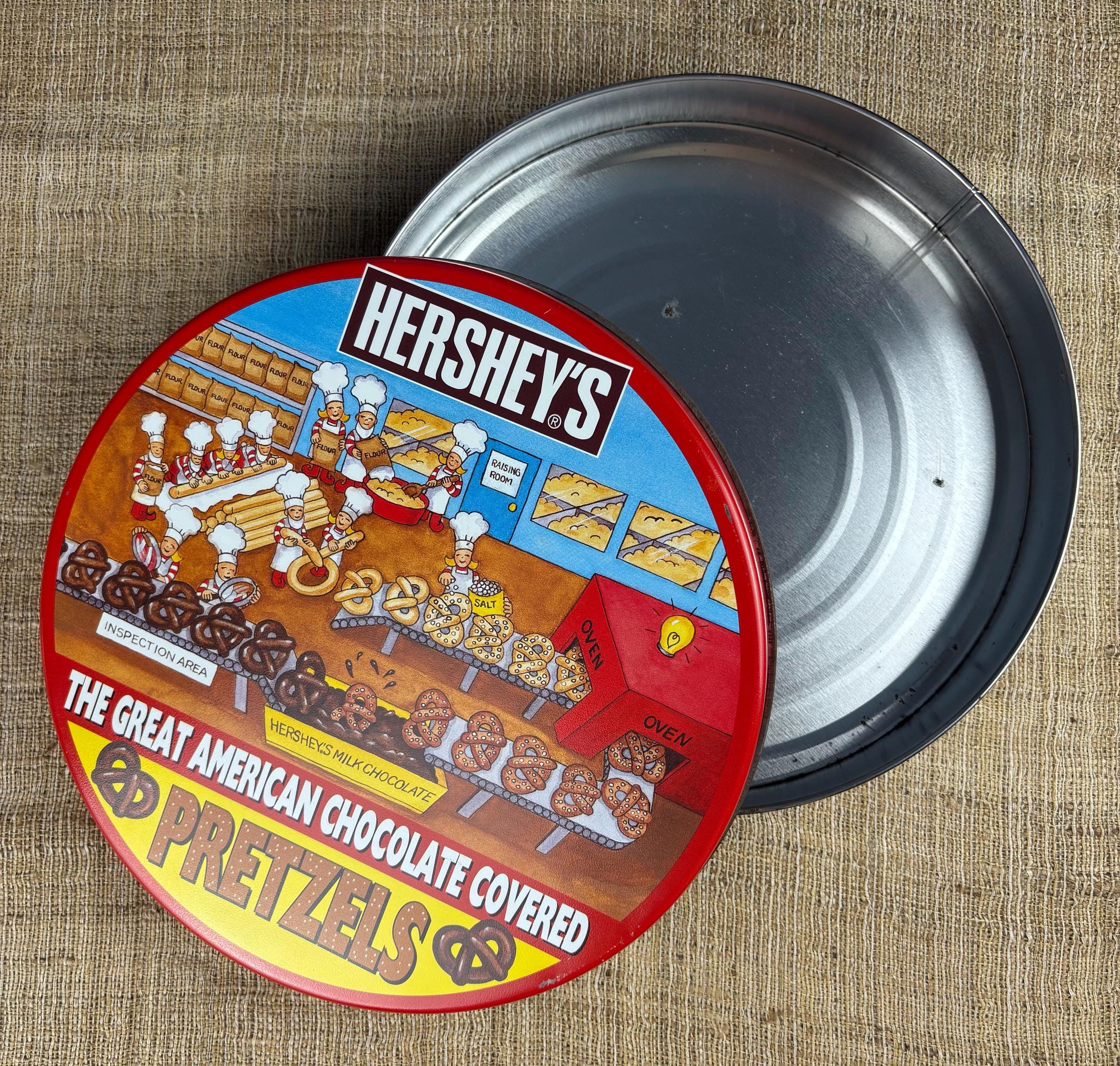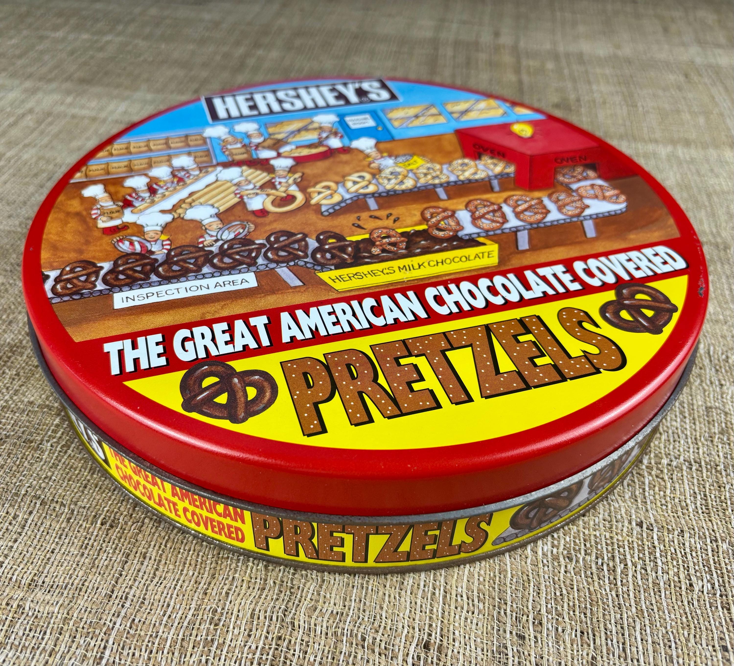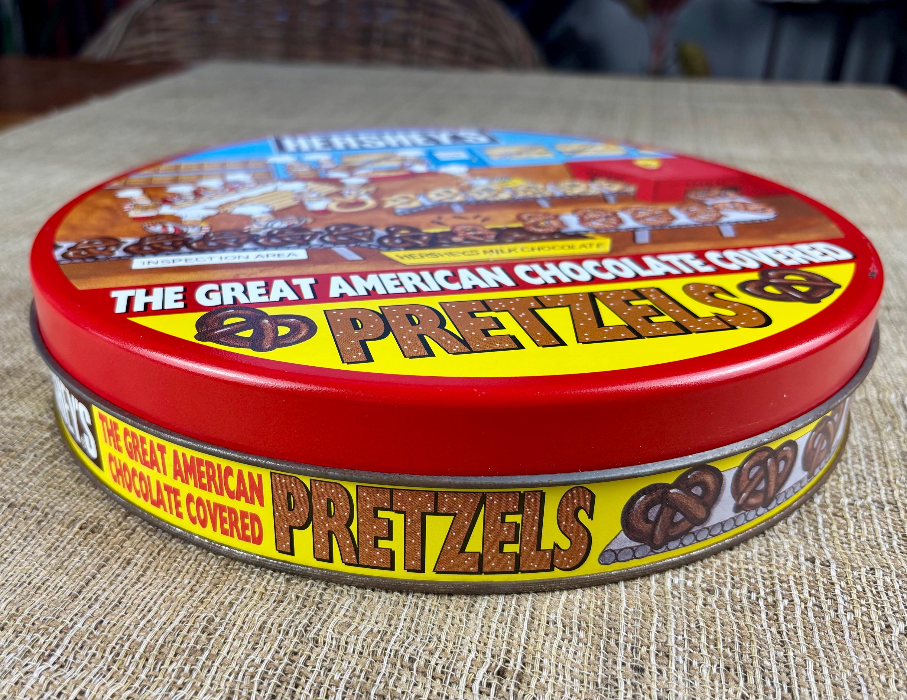 Vintage Metal Hershey’s Chocolate Covered Pretzel Tin. (Contains No Pretzels) Tin Only!