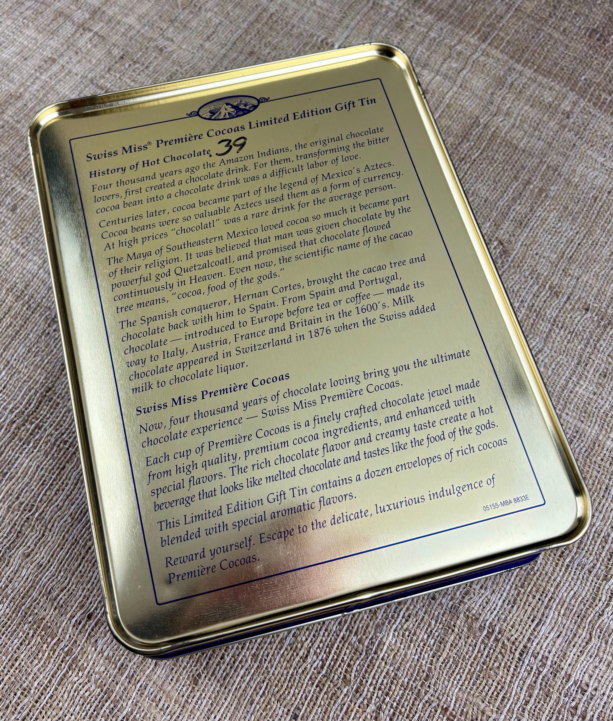 Vintage Tin Box by Swiss Miss Premier Cocoas. Tin box only, contains no chocolates!