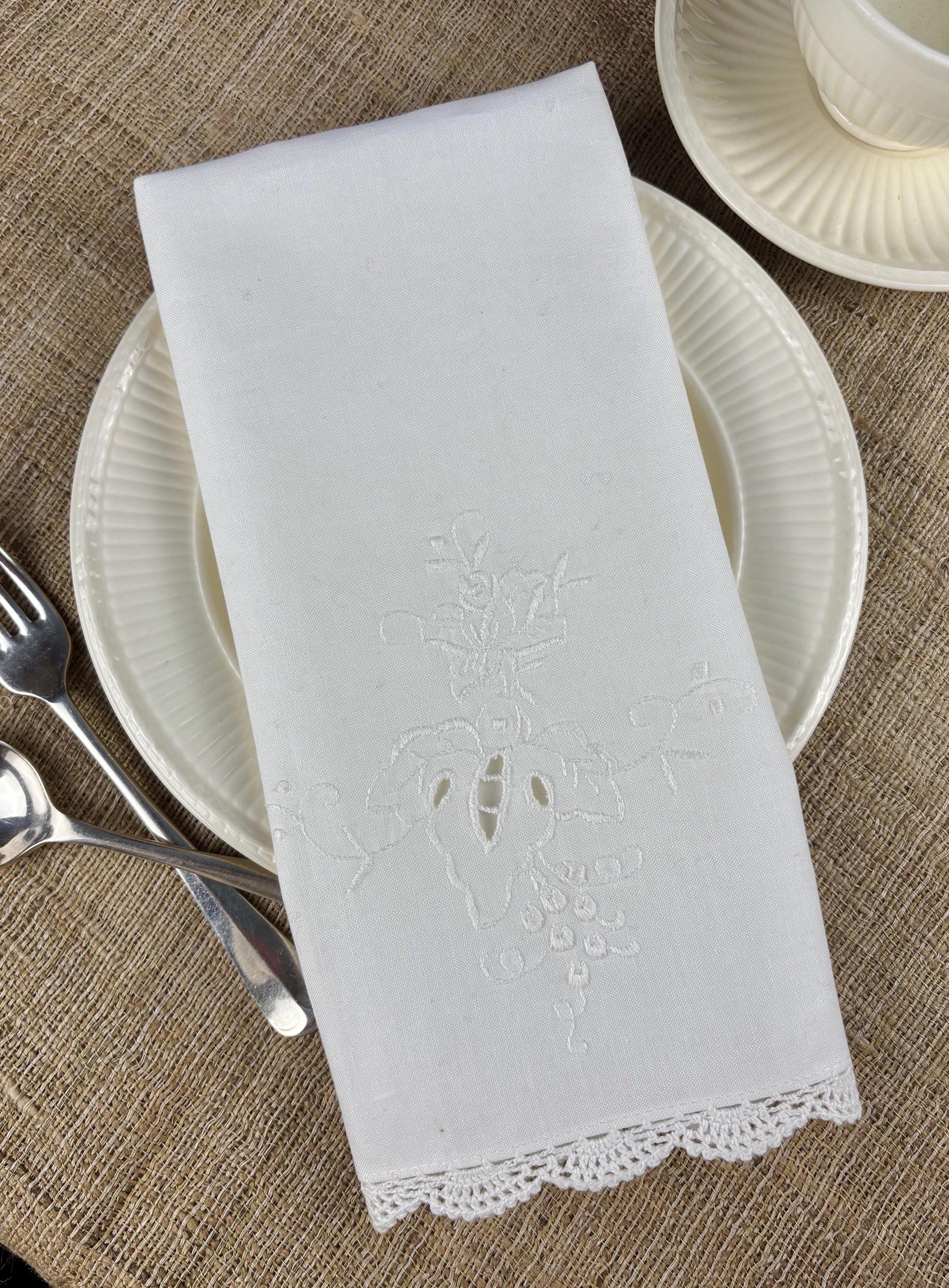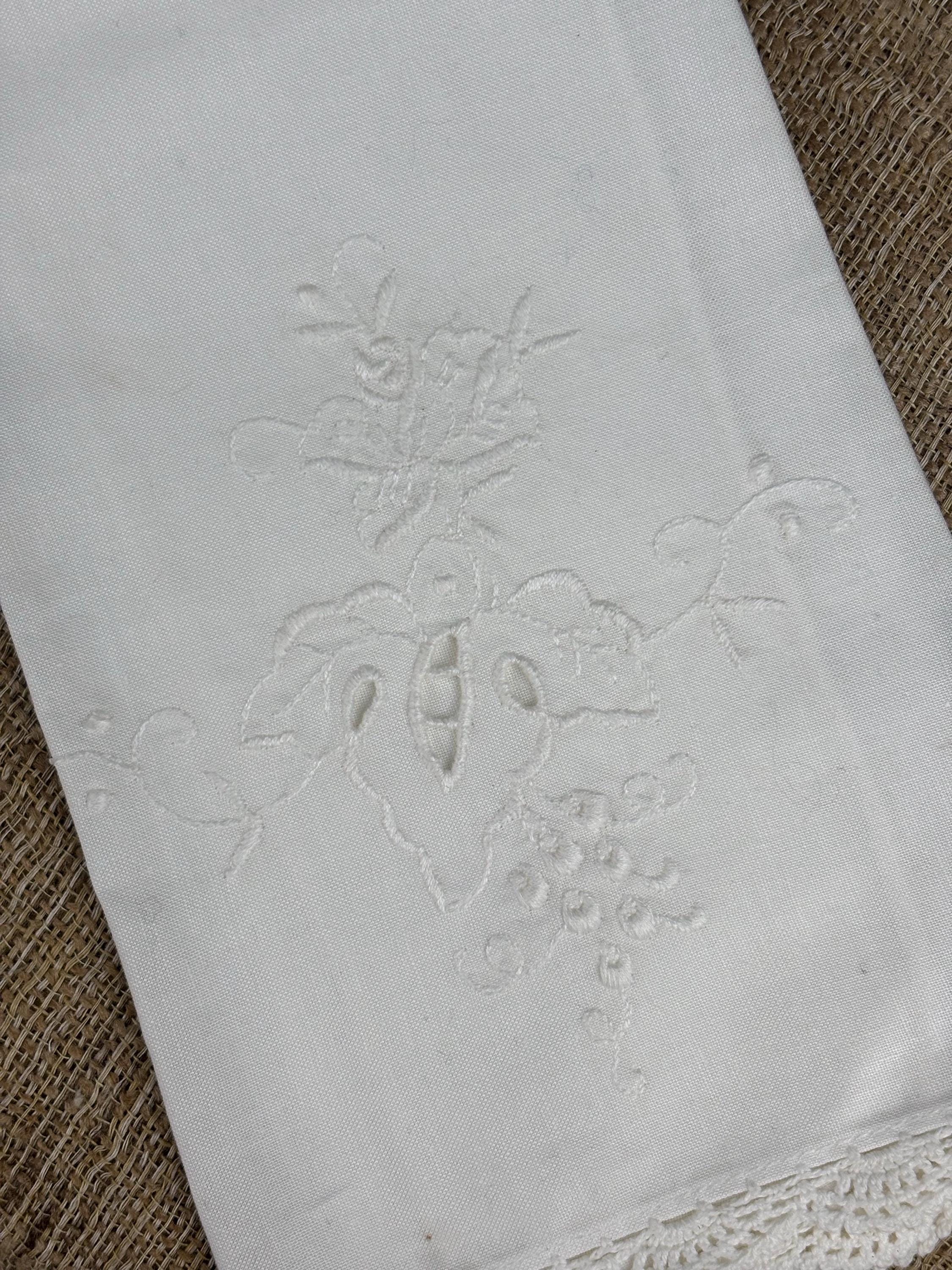 Vintage Machine Embroidered tea with Crocheted Lace trim at the ends.