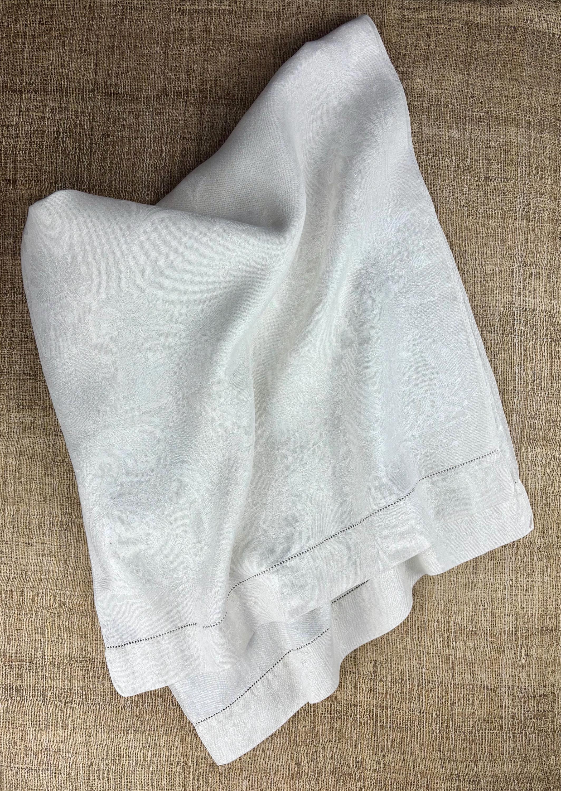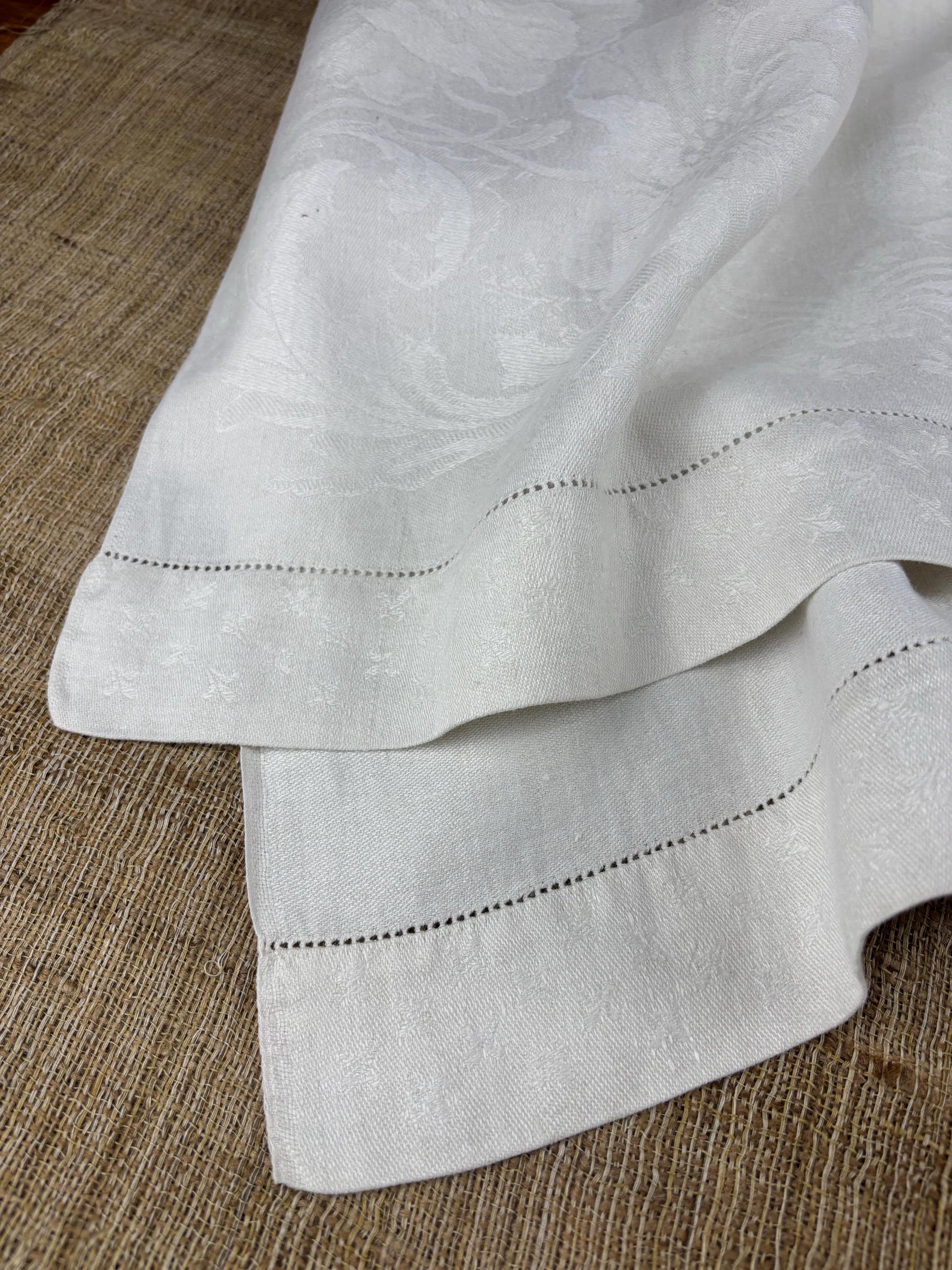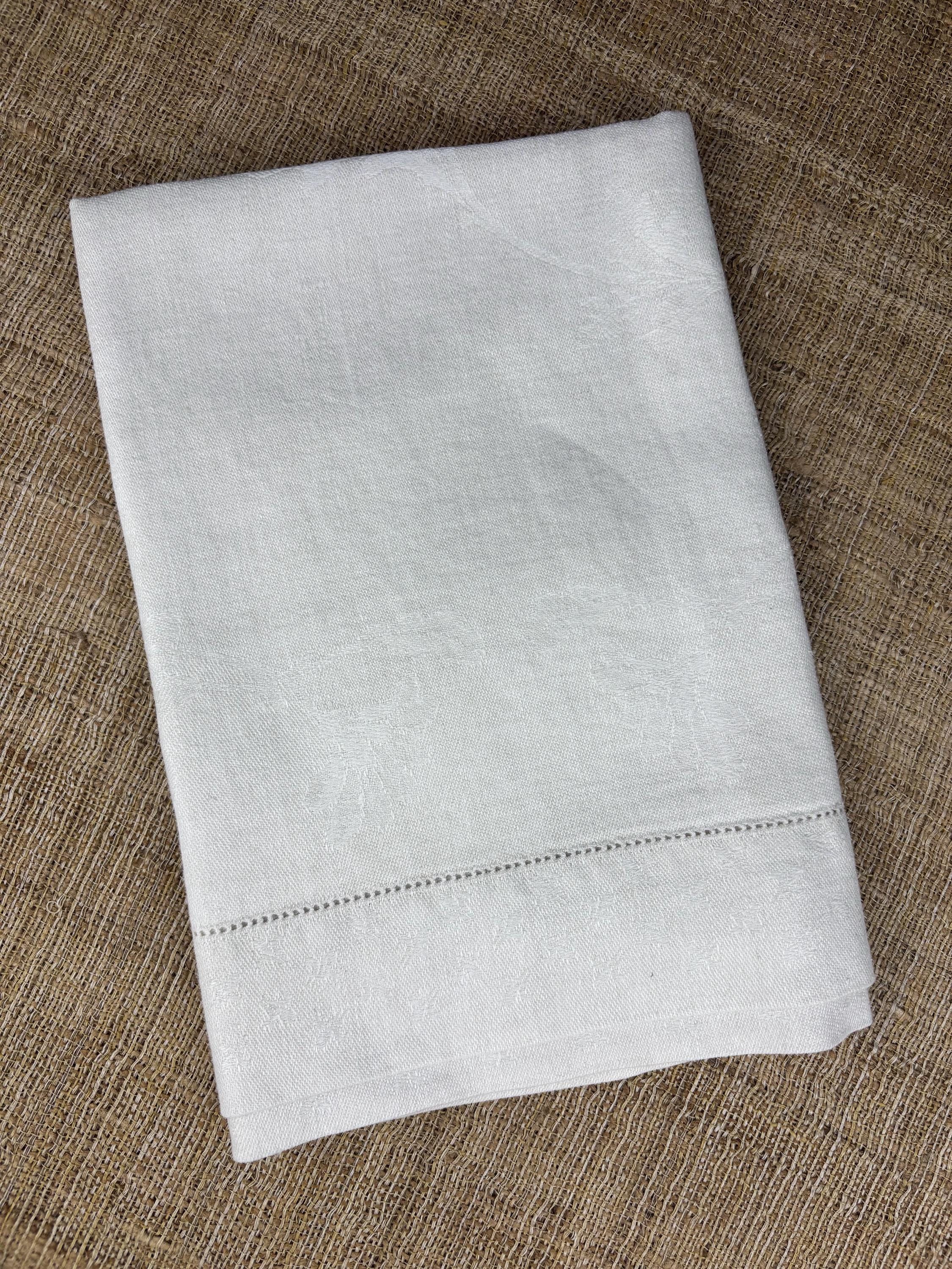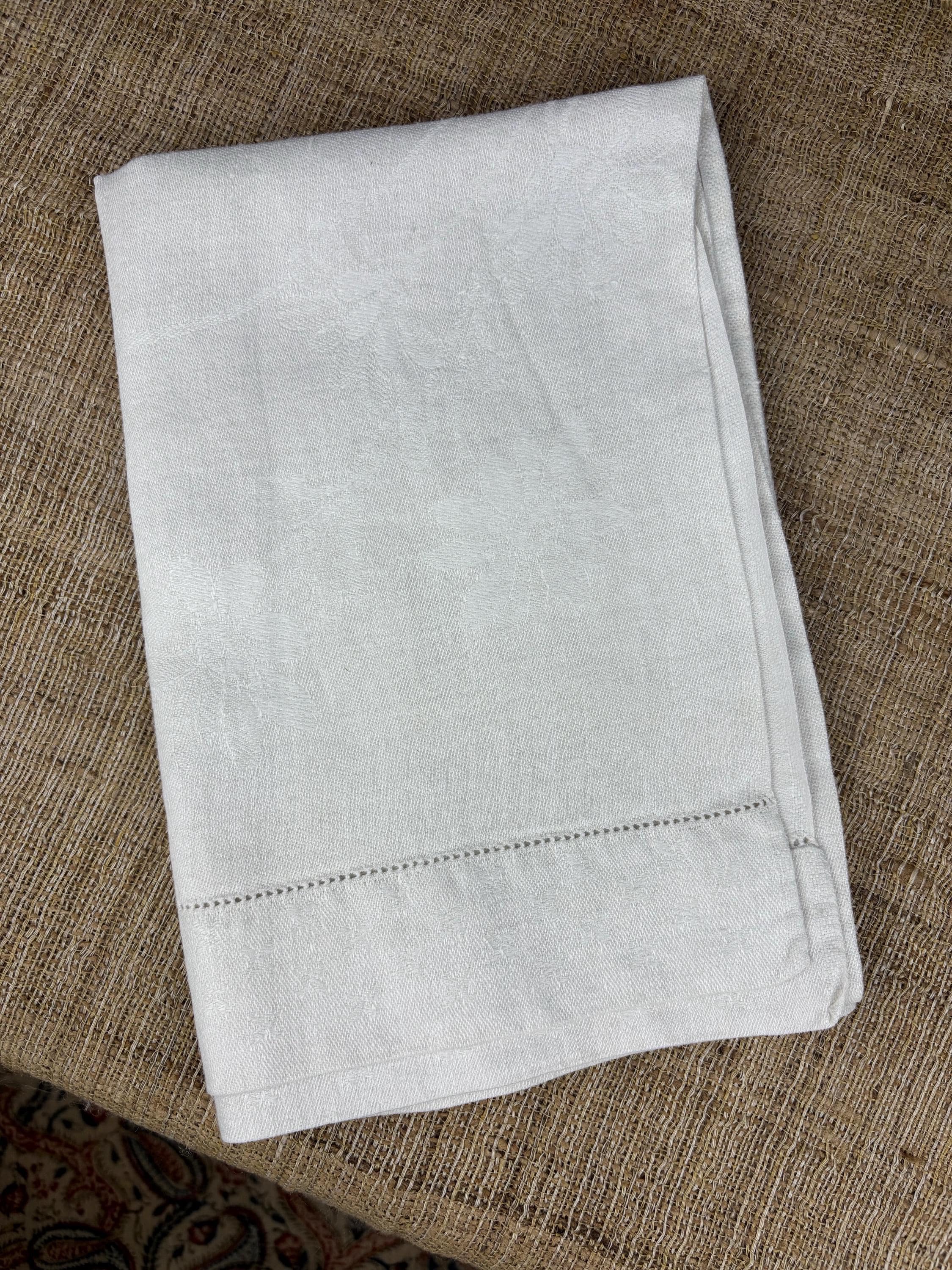 Vintage Cotton Linen Damask Hand Towel with Hem Stitched Border at Each End.