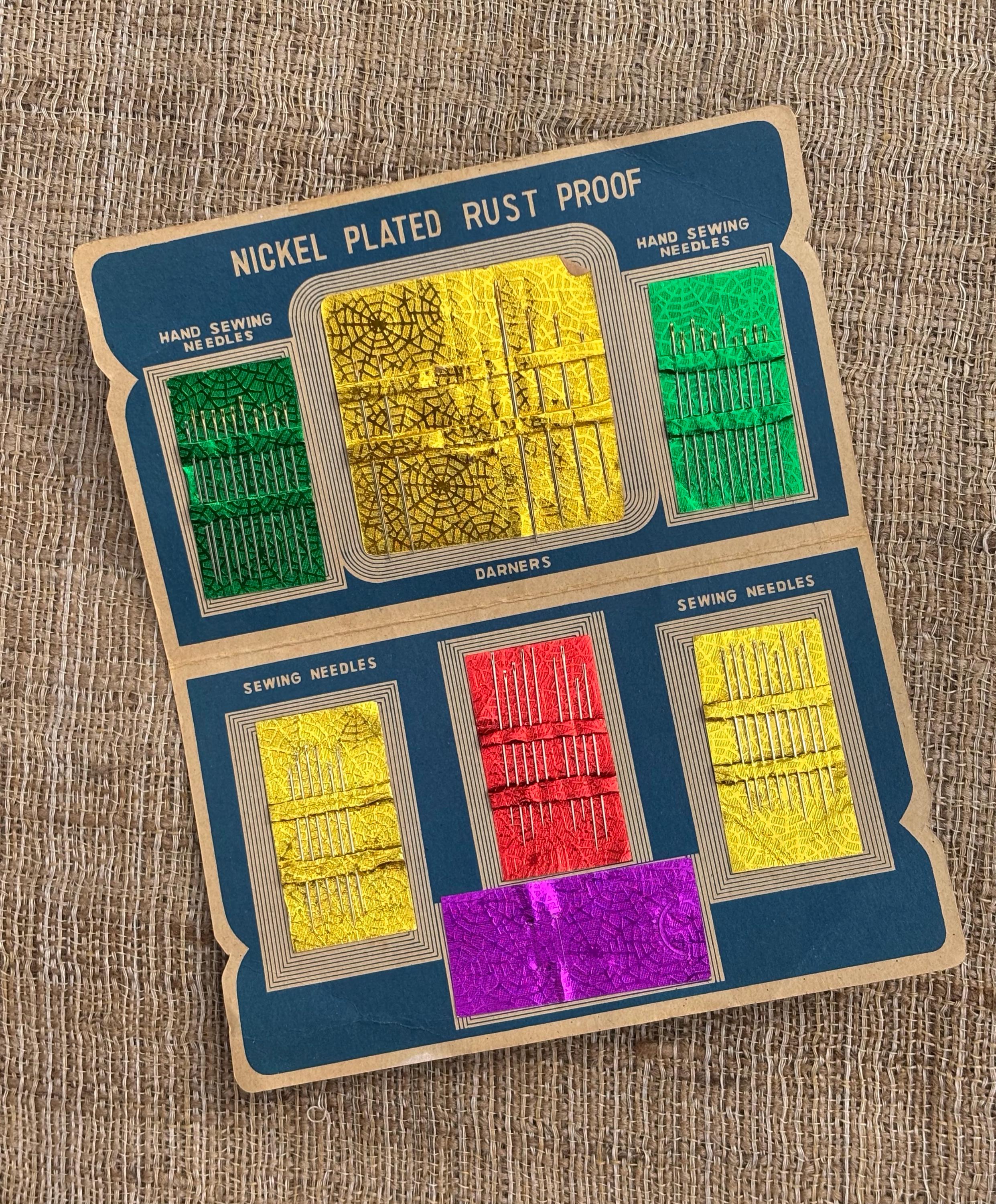 Package/Folder has some wear and all the needles and needle threader are not included. The packet is 5.7/8” inches by 3.5” inches. Nickle Plated Rust Resistant Needles.