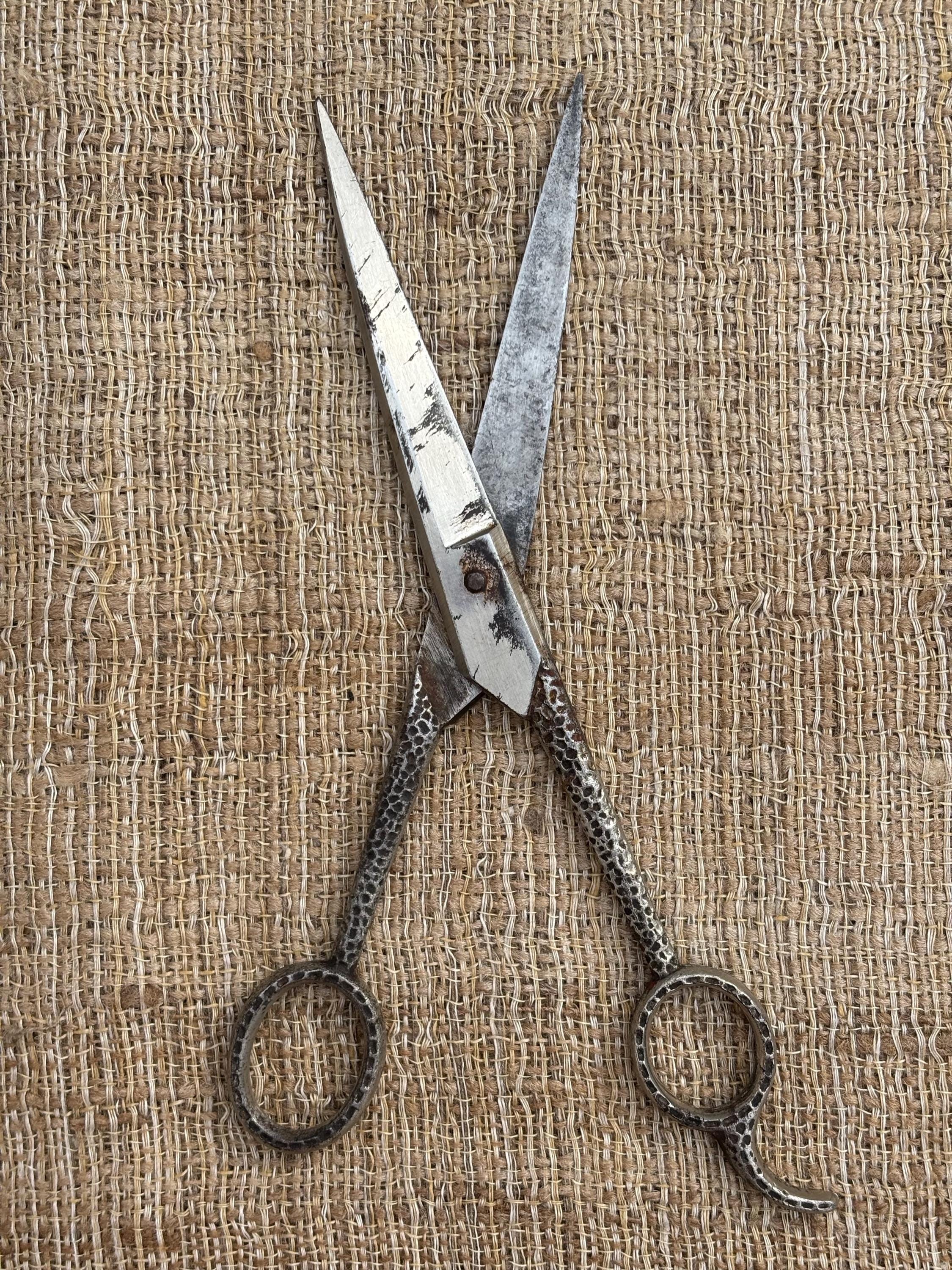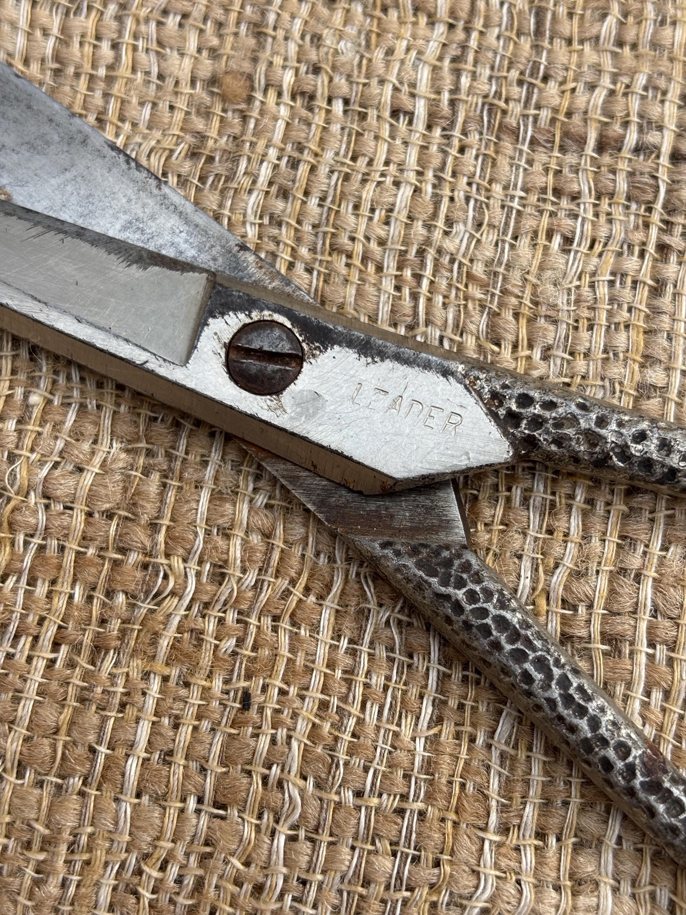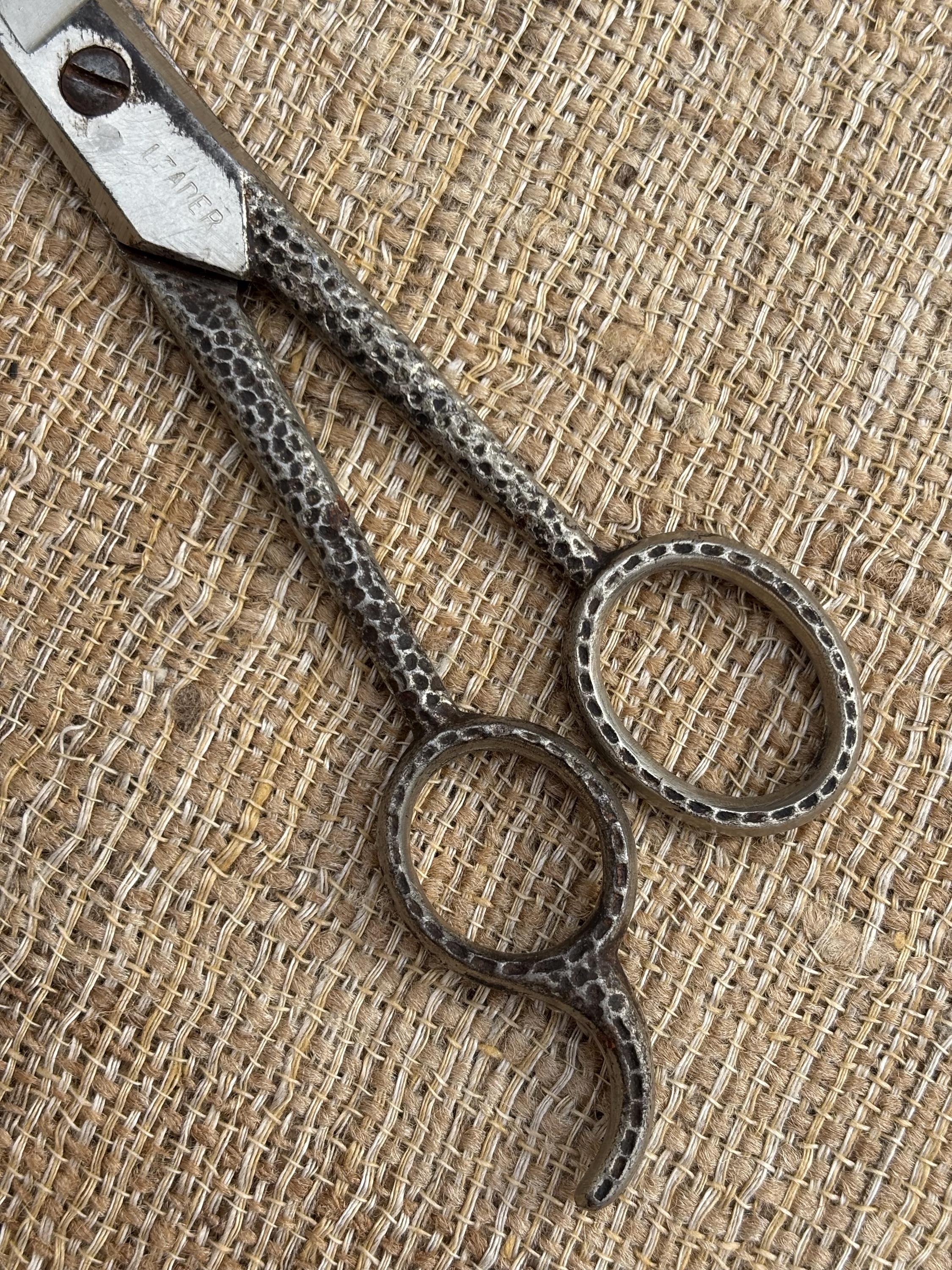Vintage Hammered Textured Handle Barber Scissors by Leader