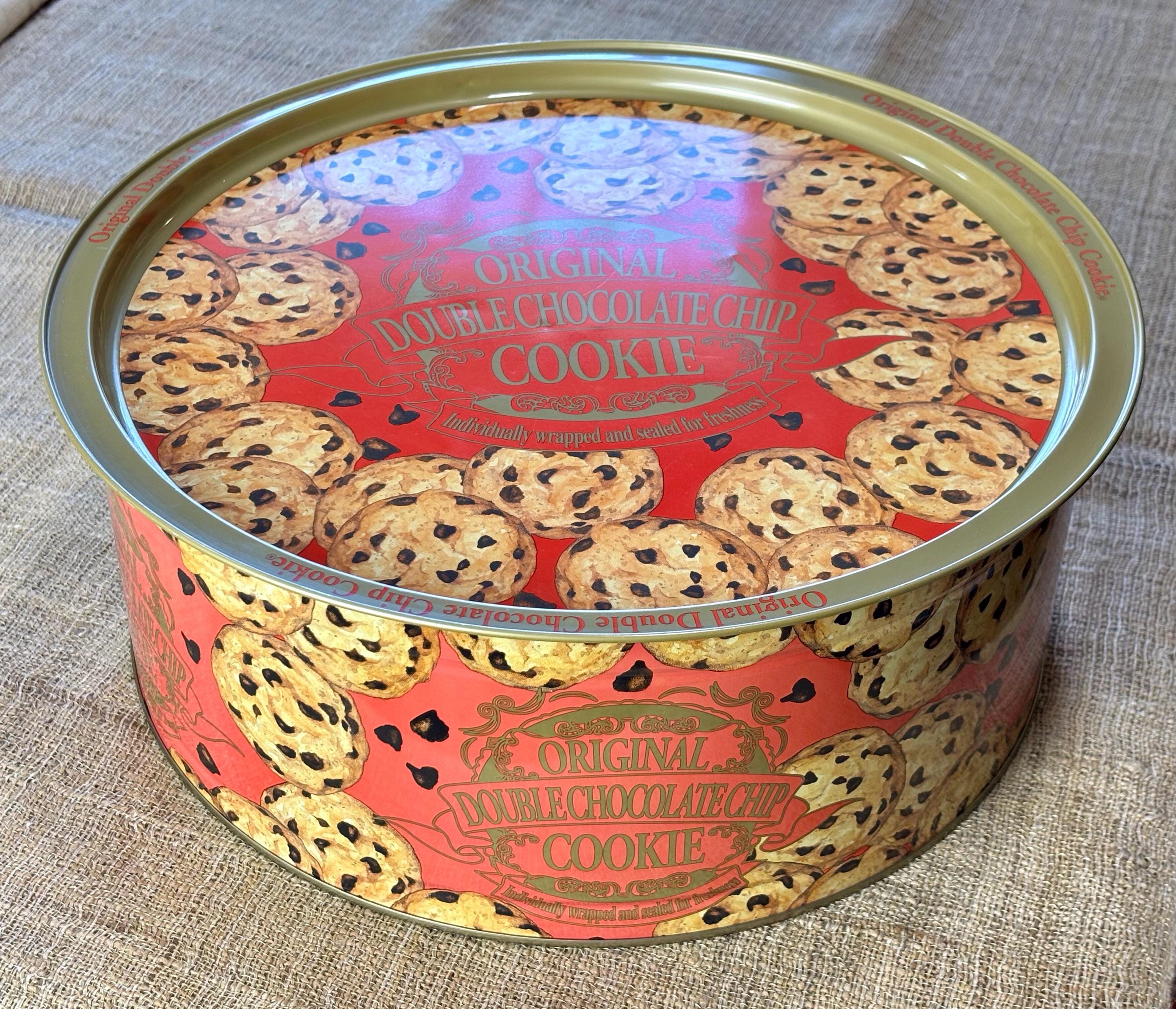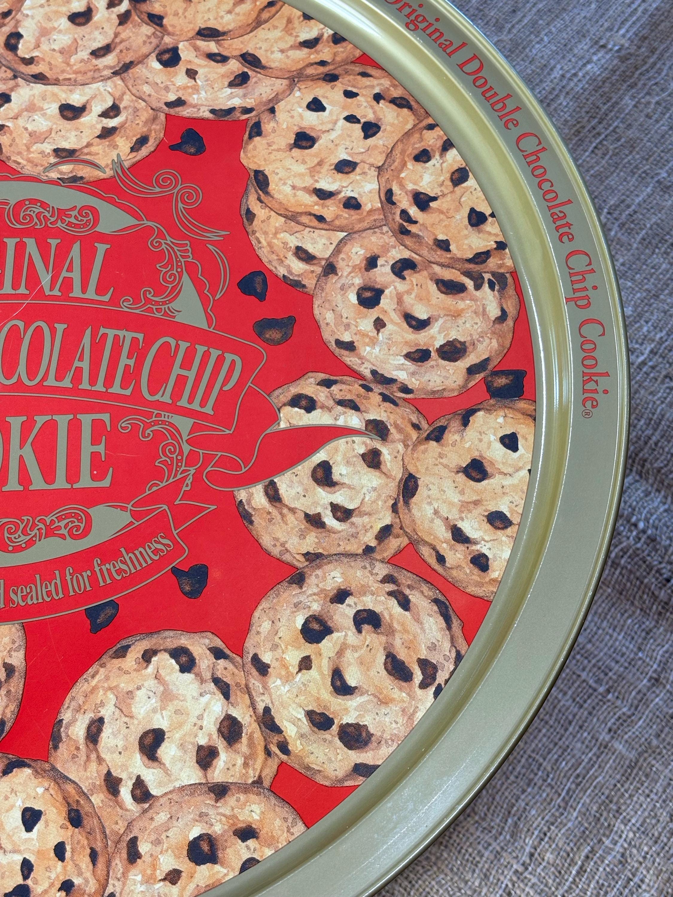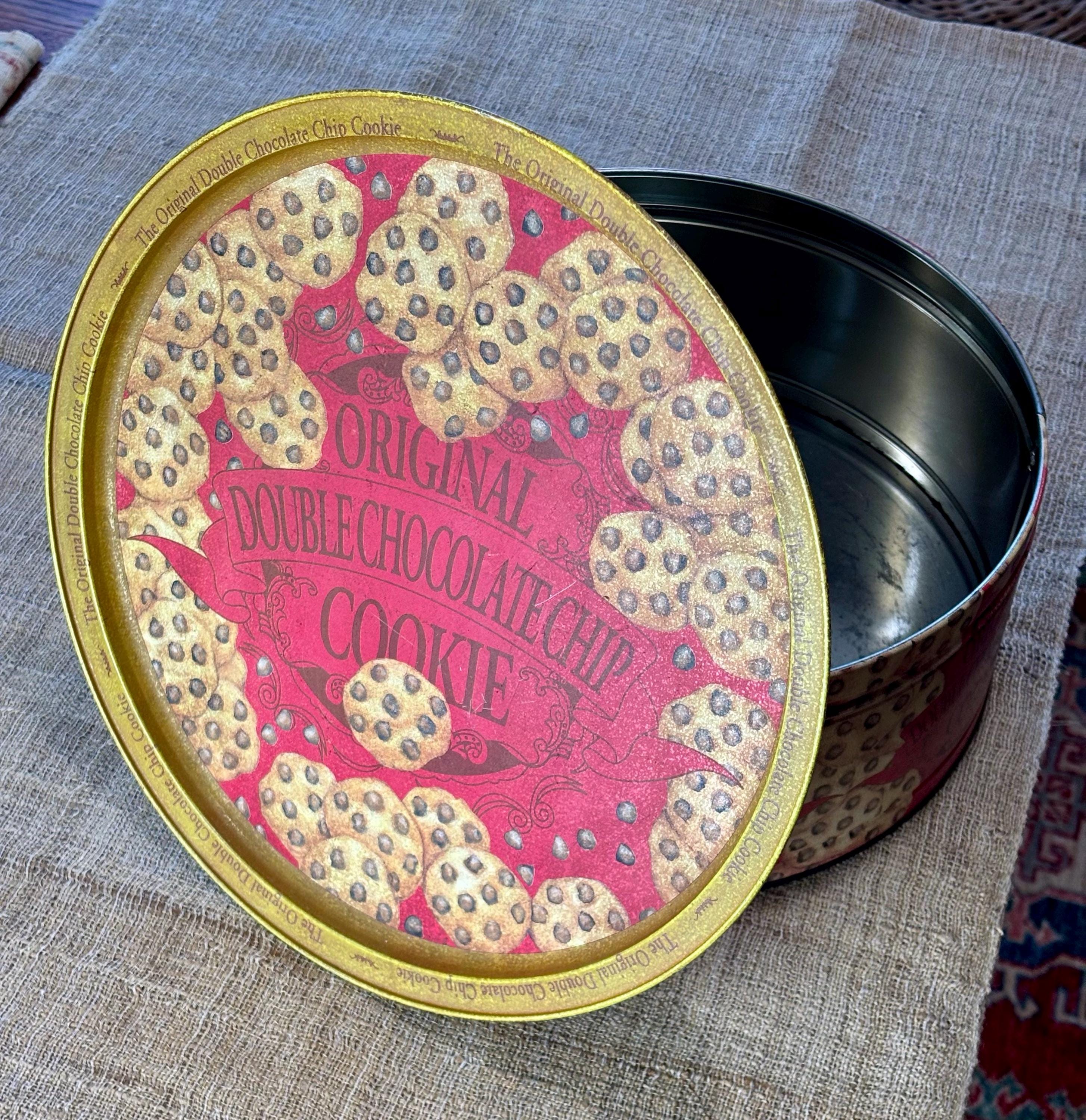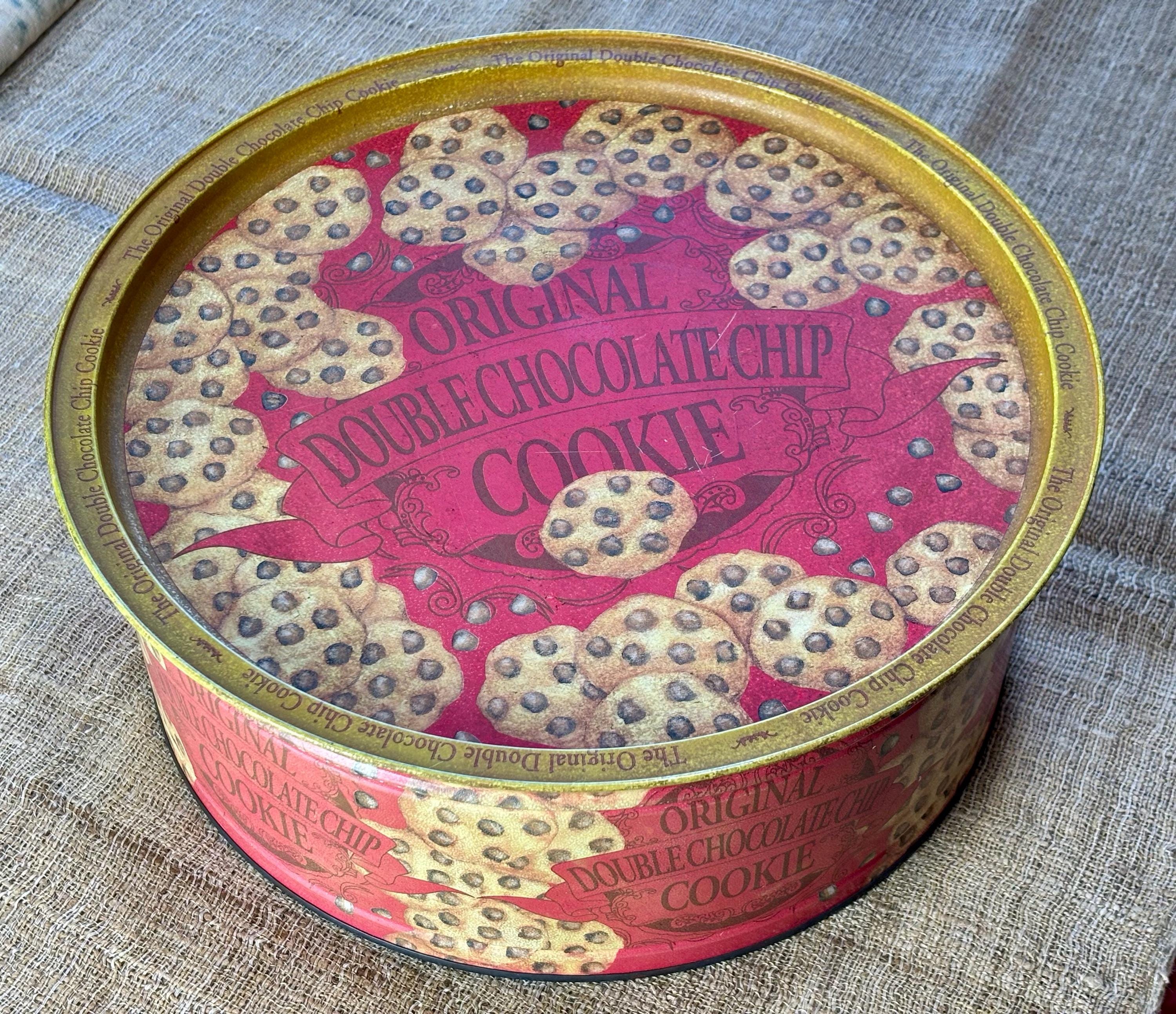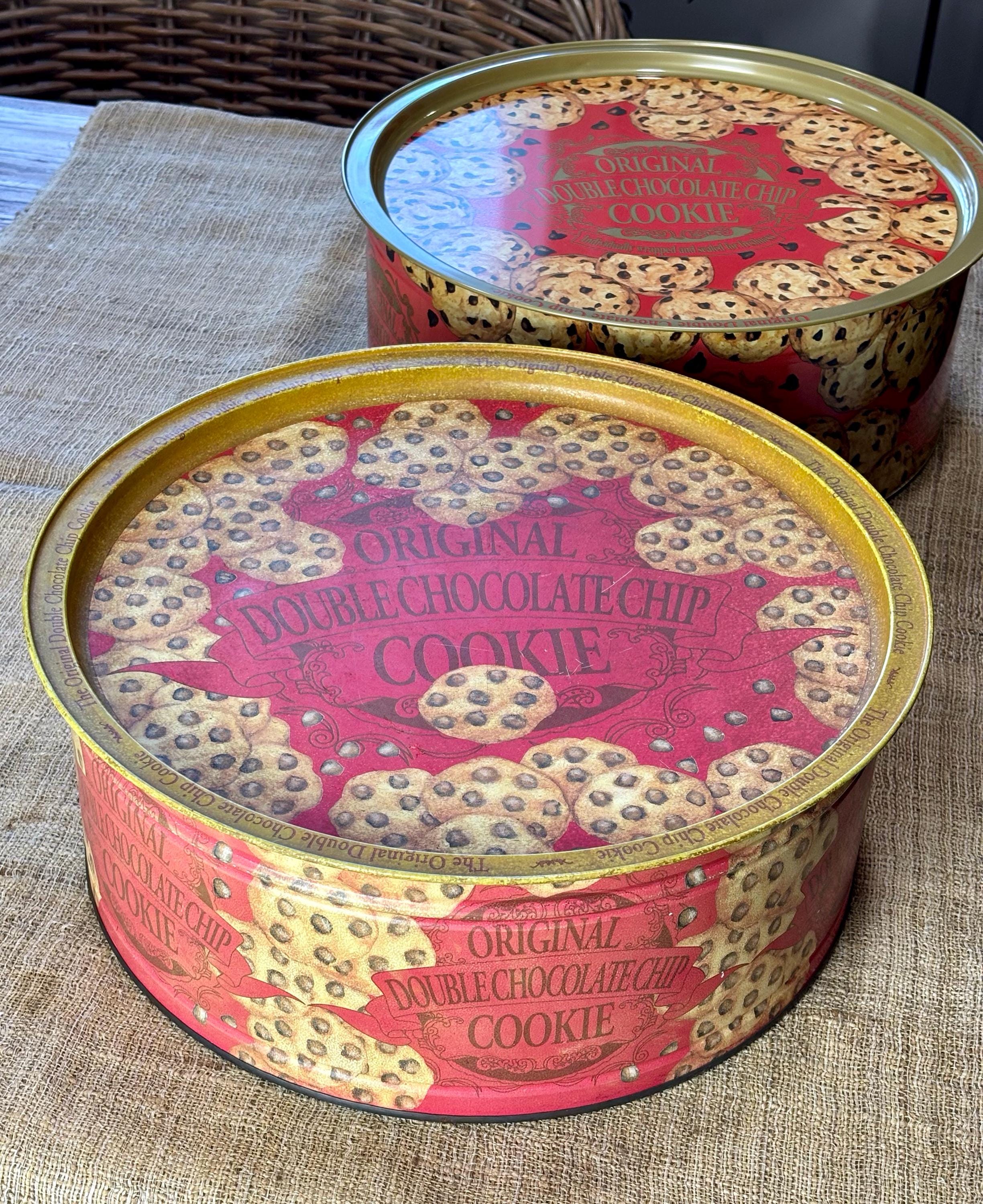 Vintage Natco Chocolate Chip Cookie Tins featuring decorative cookie pattern. Contains No Cookies, Tin Only.