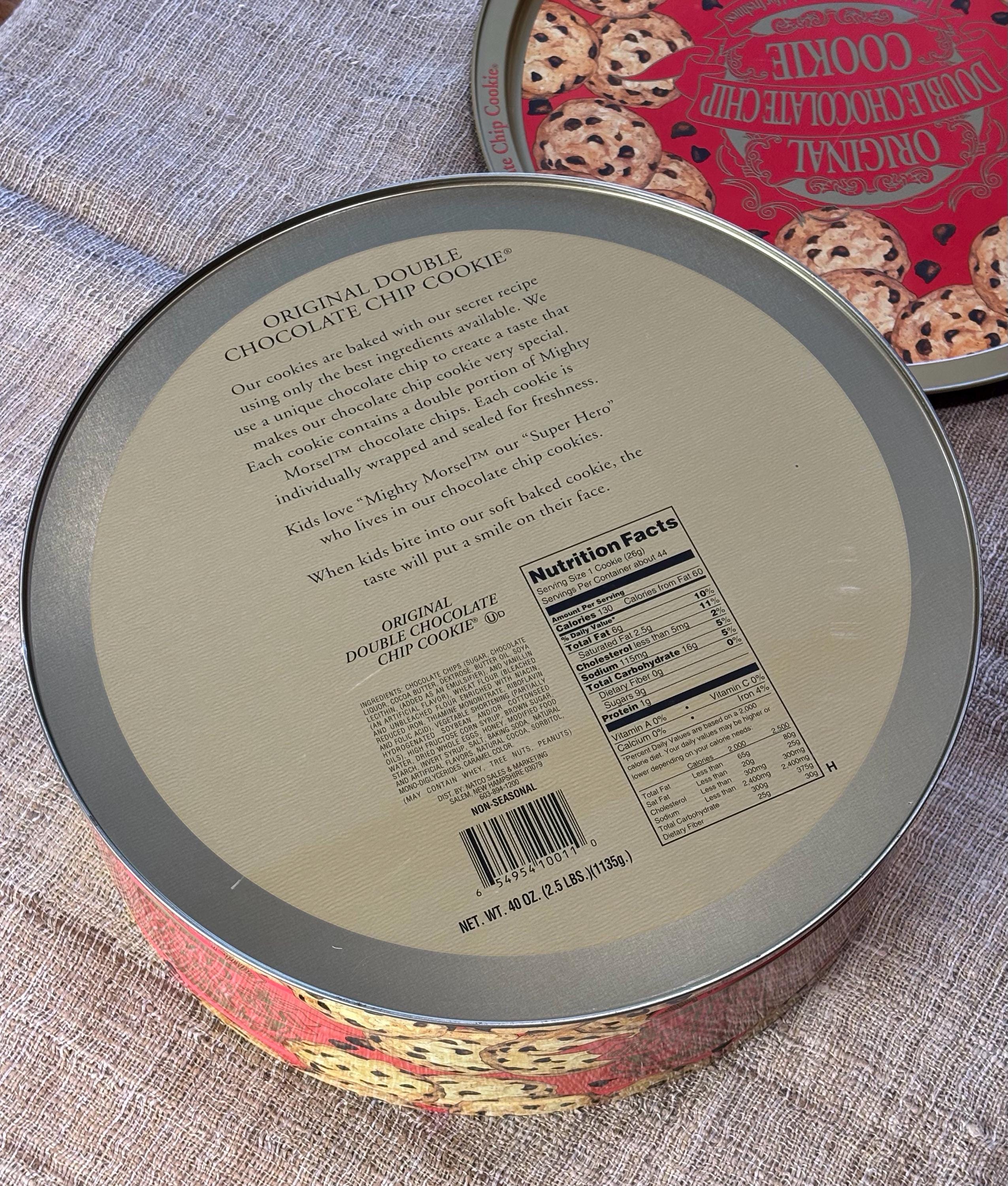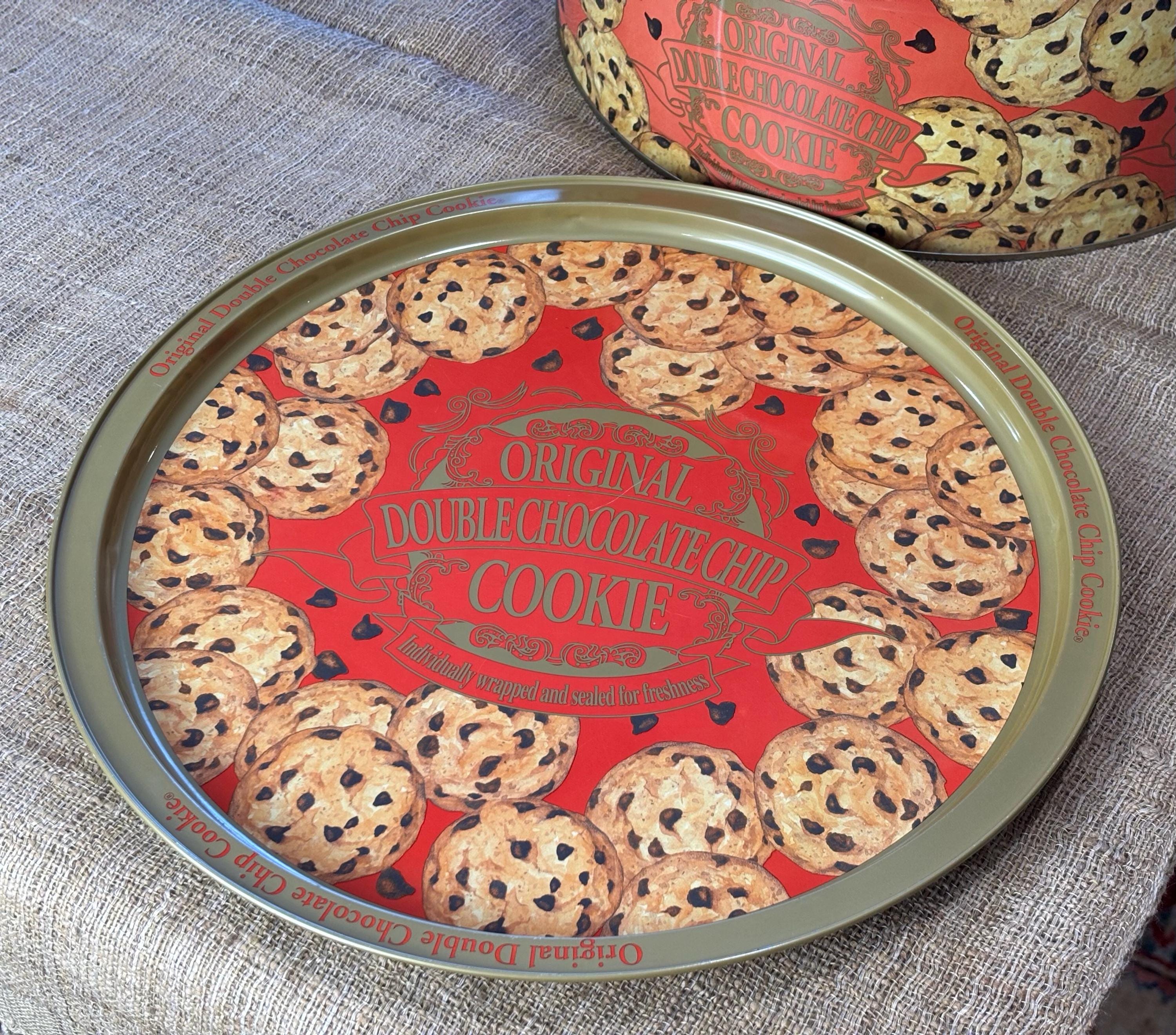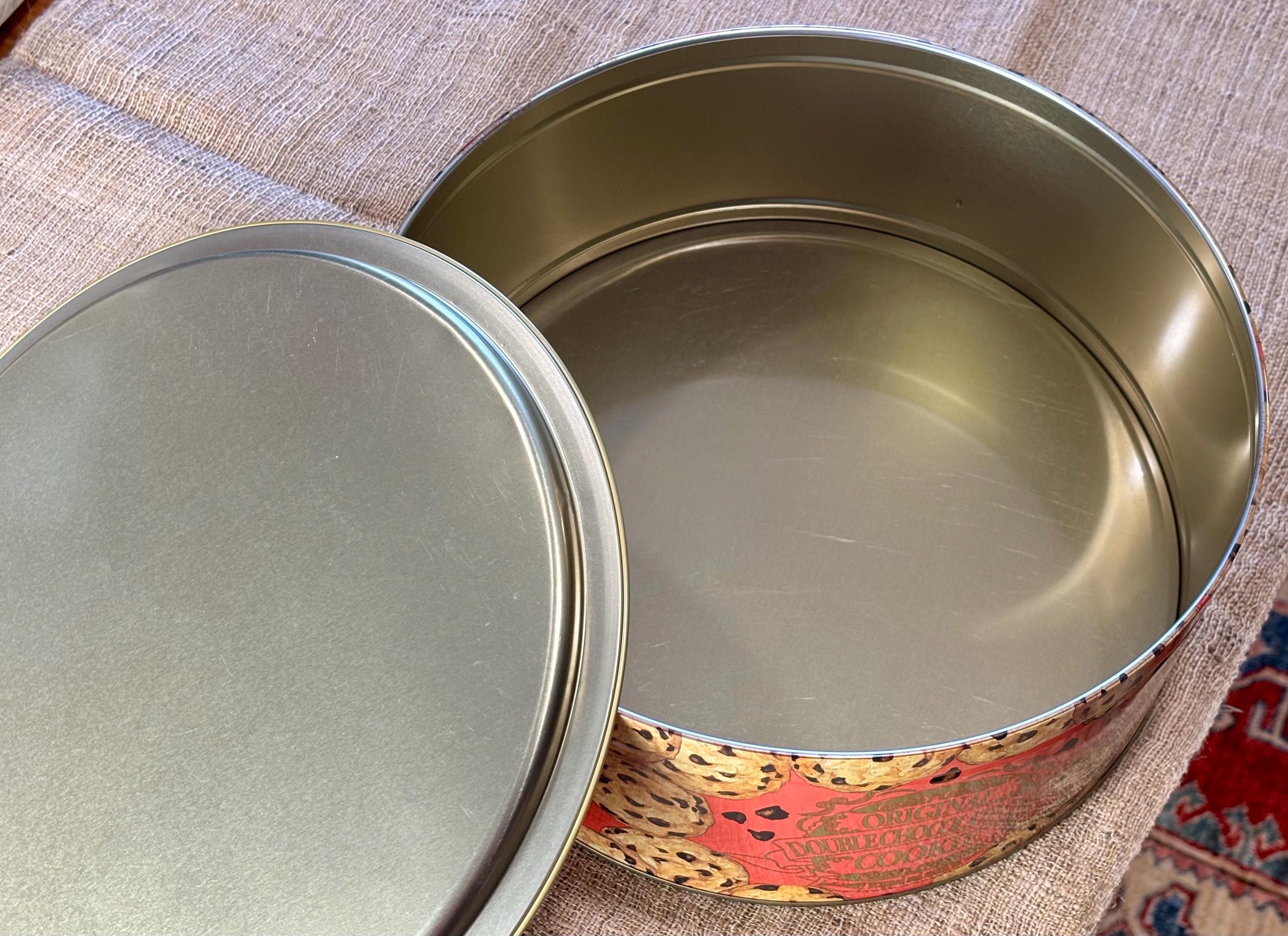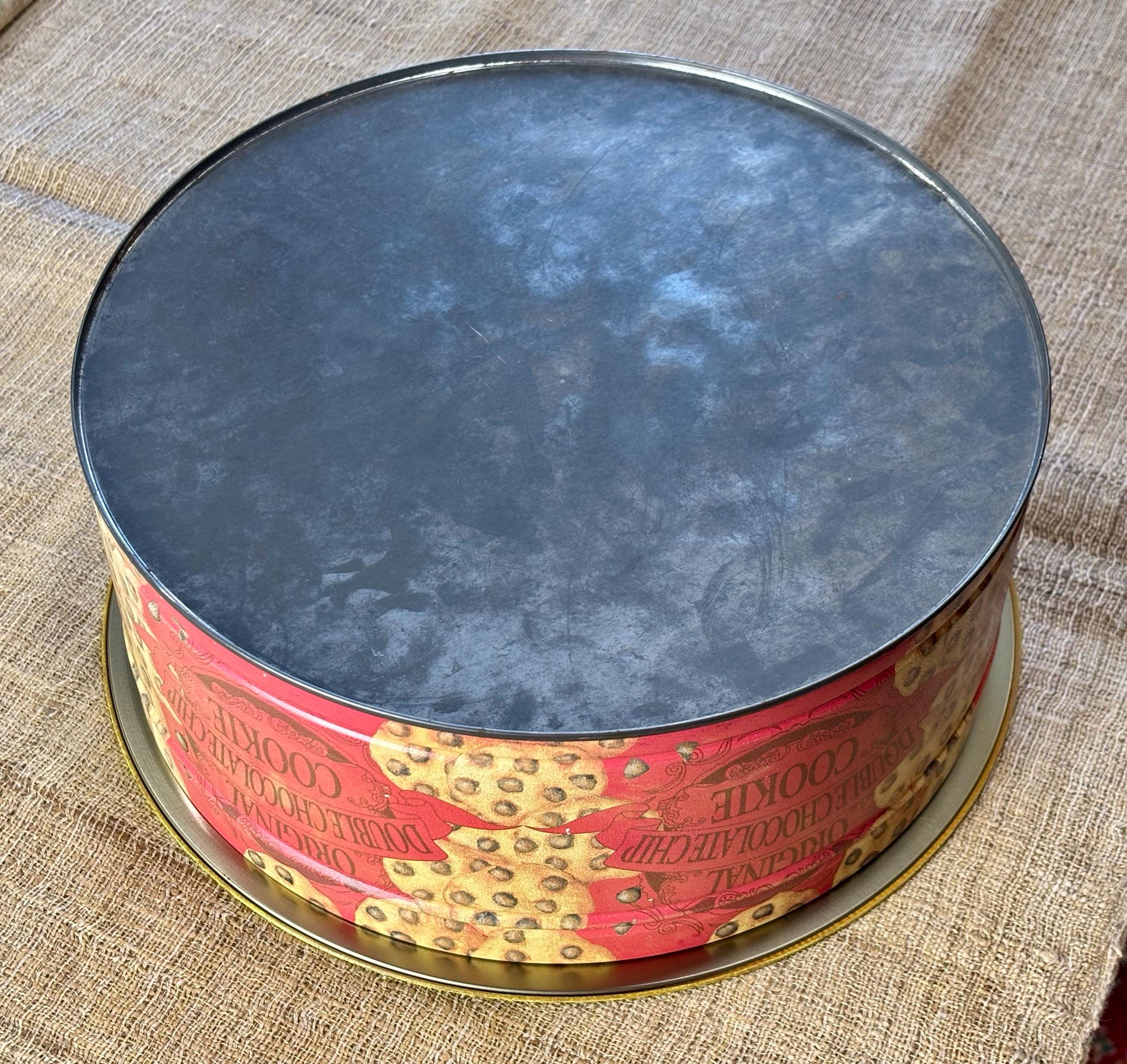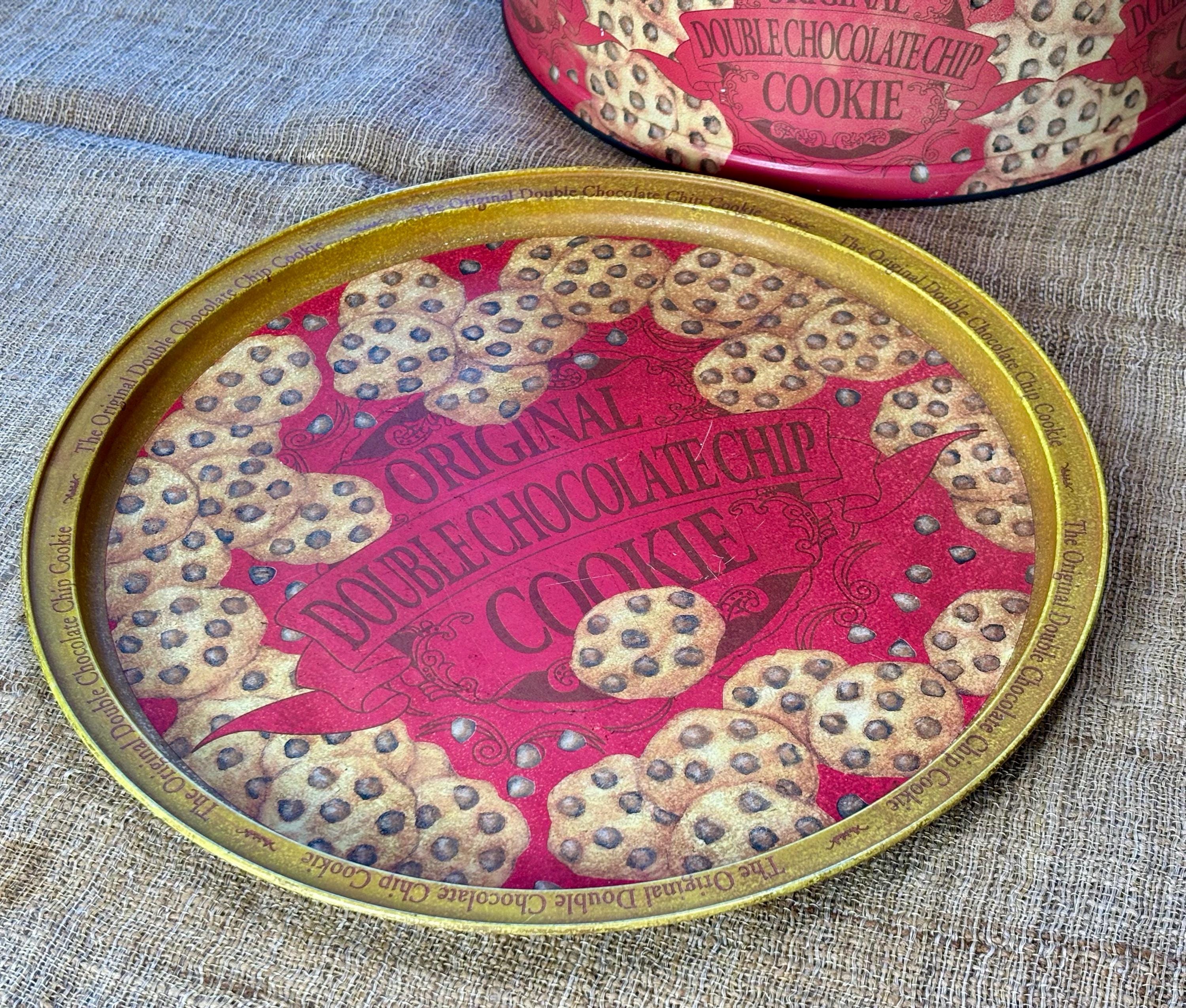 Vintage Natco Chocolate Chip Cookie Tins featuring decorative cookie pattern. Contains No Cookies, Tin Only.