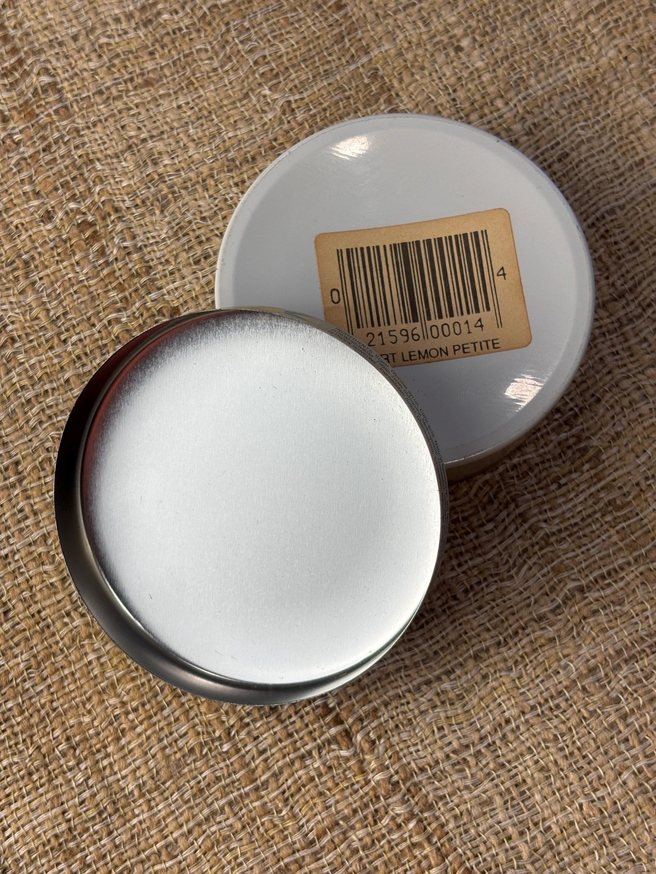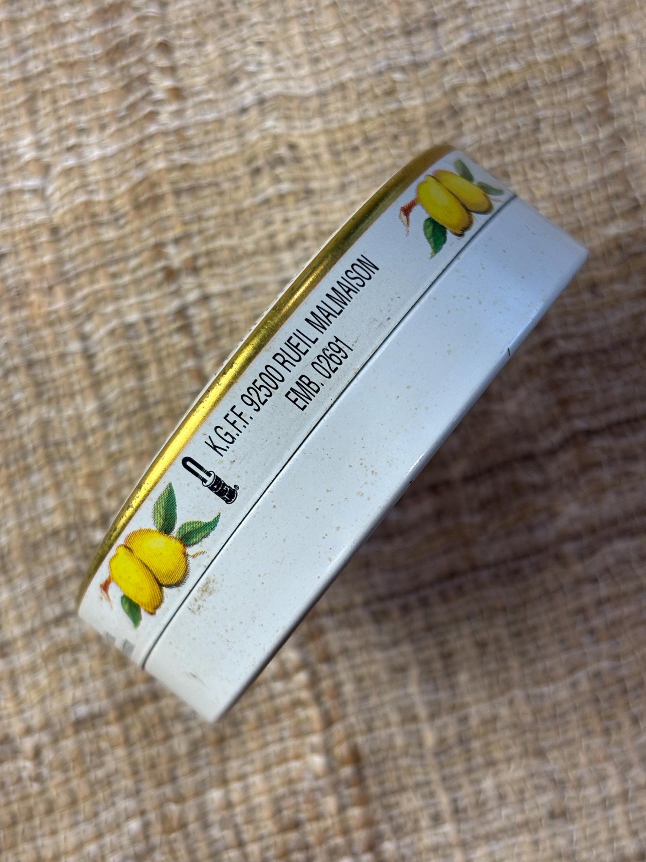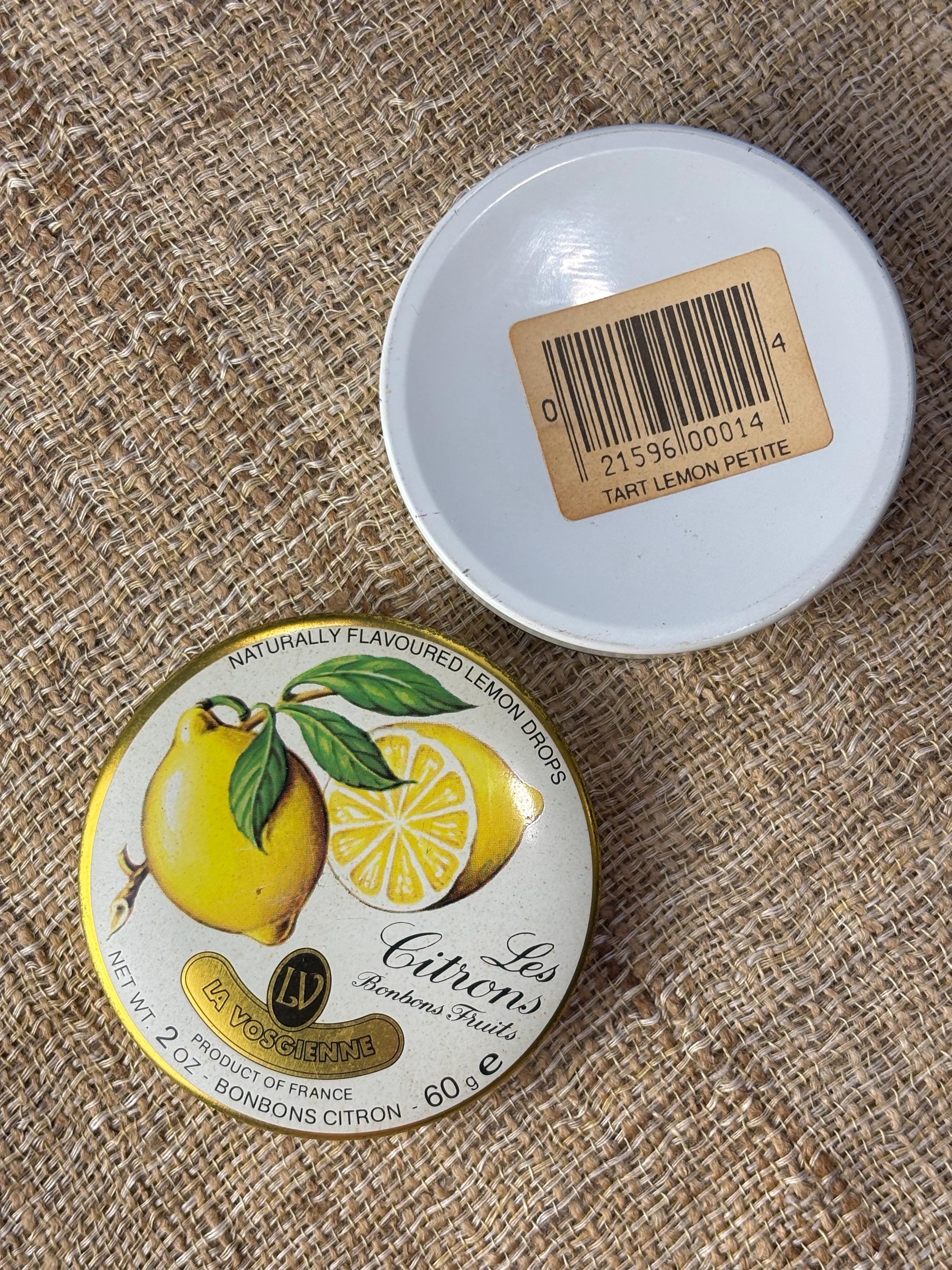 Small Vintage LesCitron Lemon Drop Tin. 3” inches in diameter and 1” inch tall